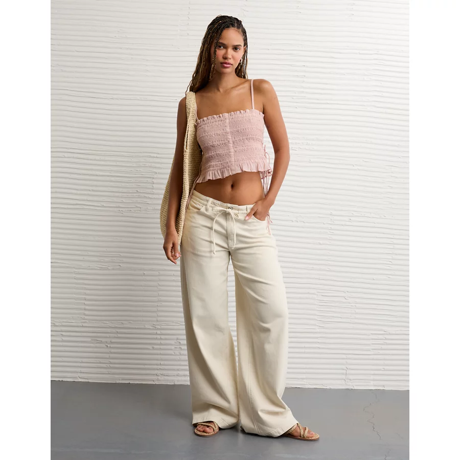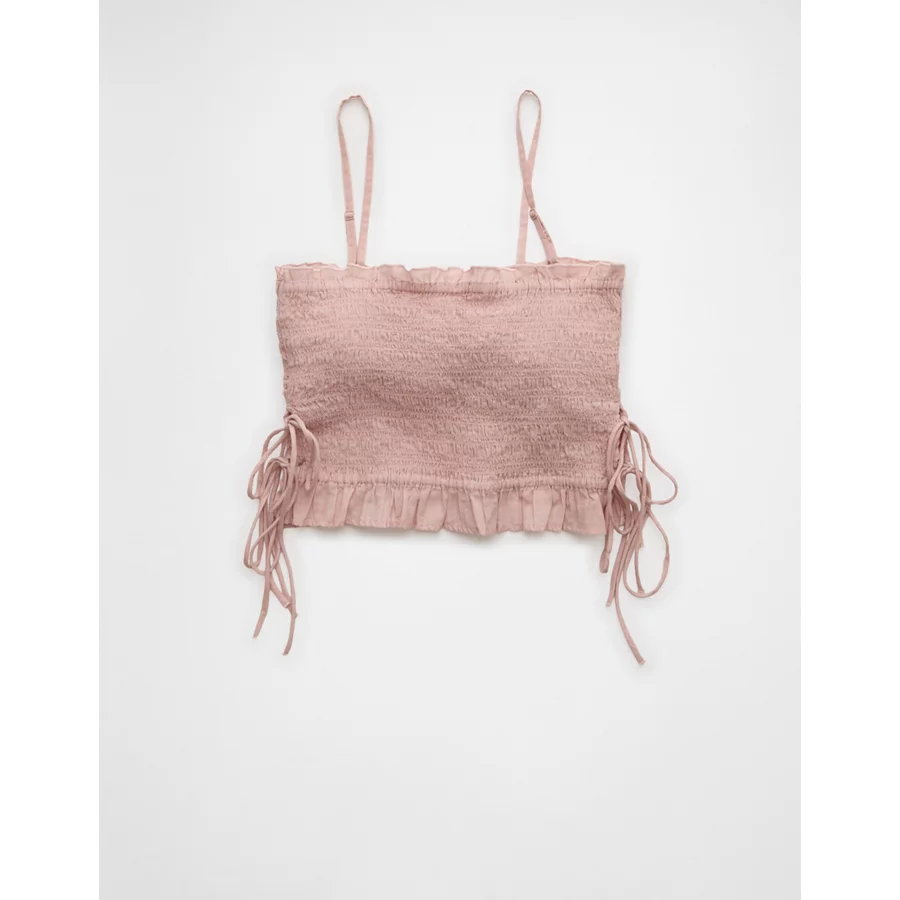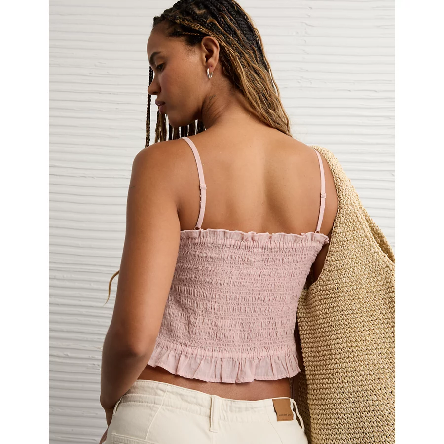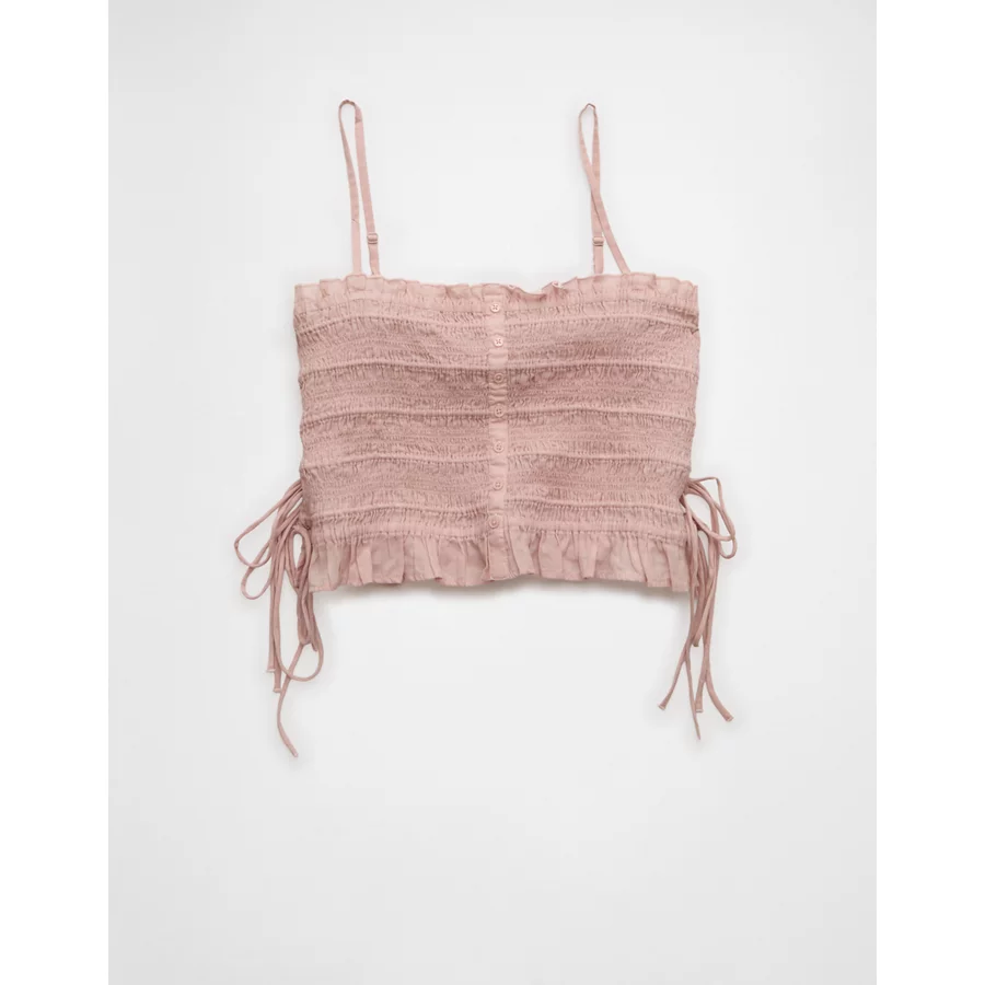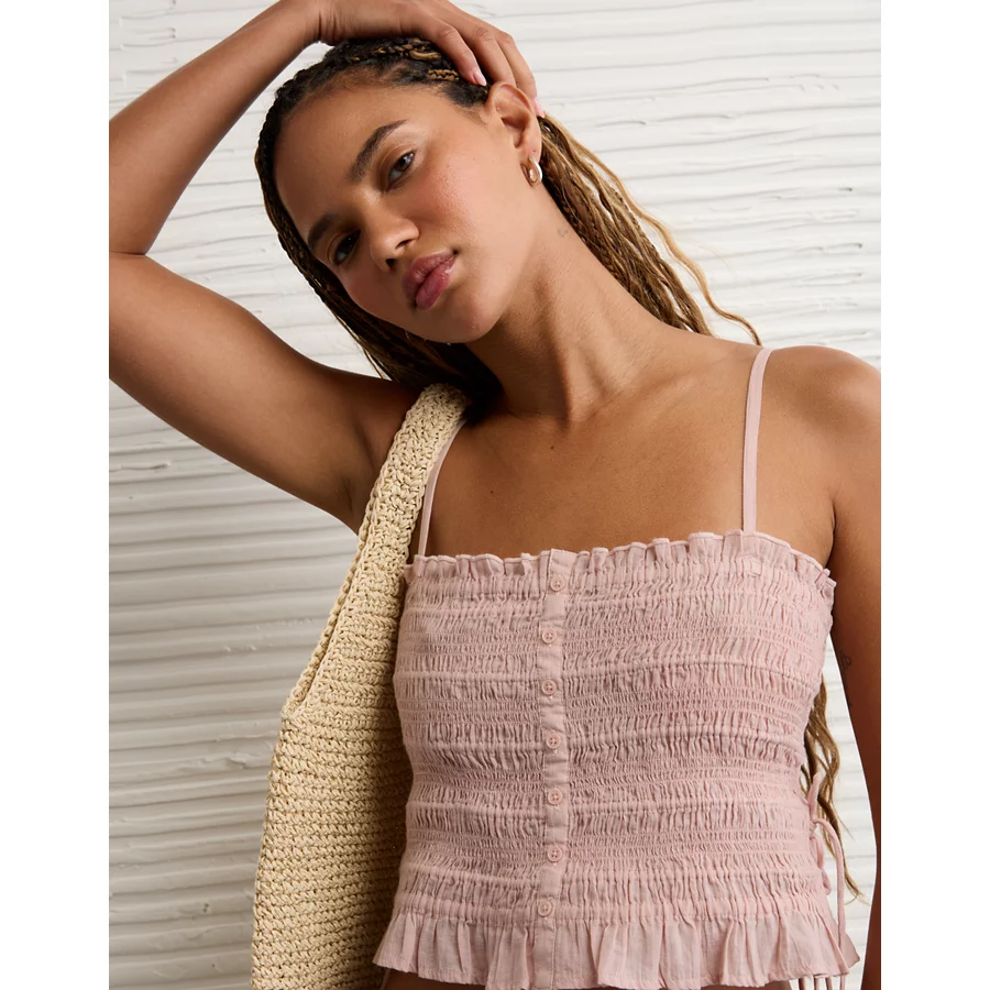 AE Smocked Tie Side Button-Up Tank Top – Light Pink