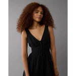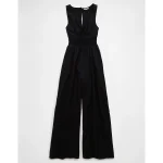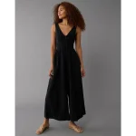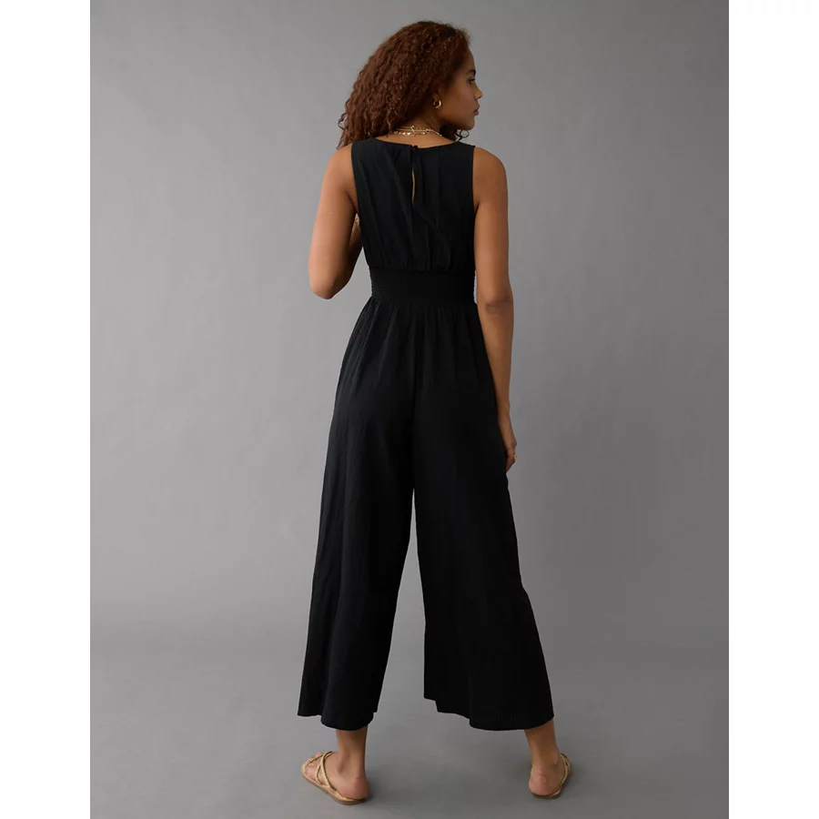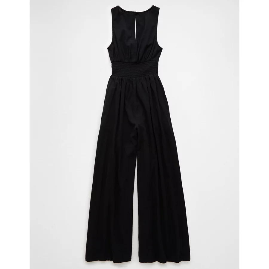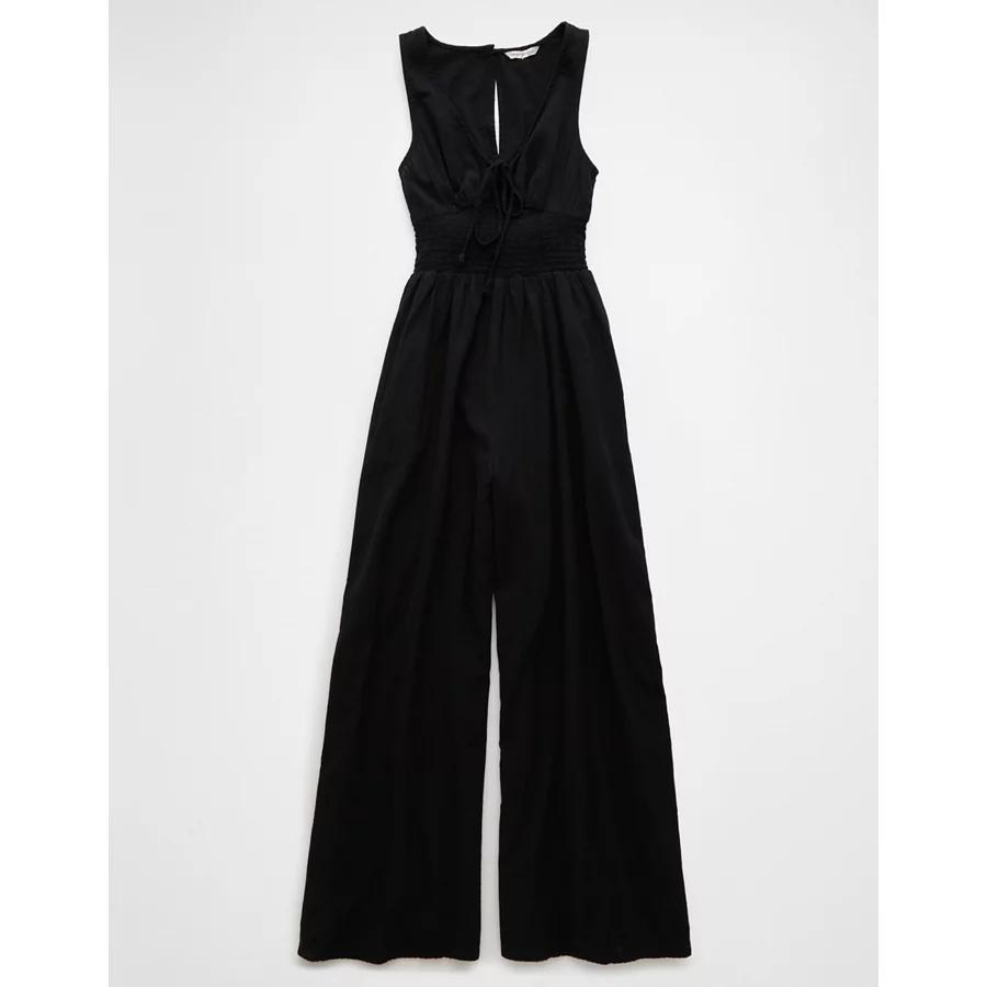AE Smocked V-Neck Jumpsuit – Black