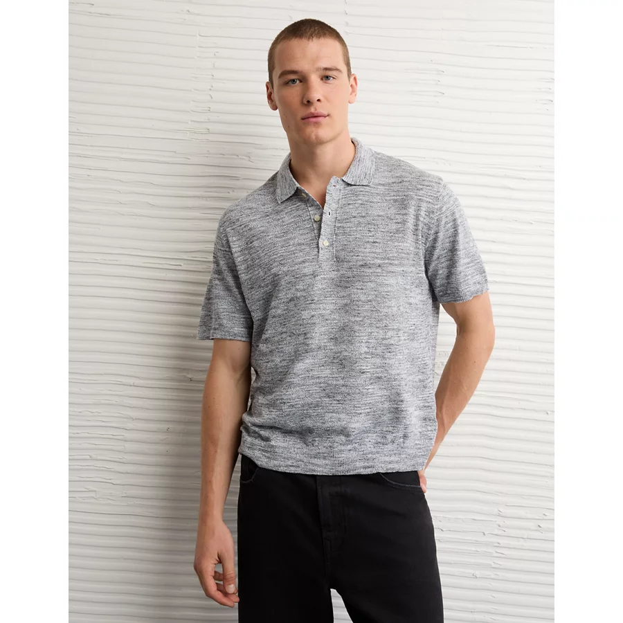 AE Space Dye Sweater Polo Shirt – Charcoal