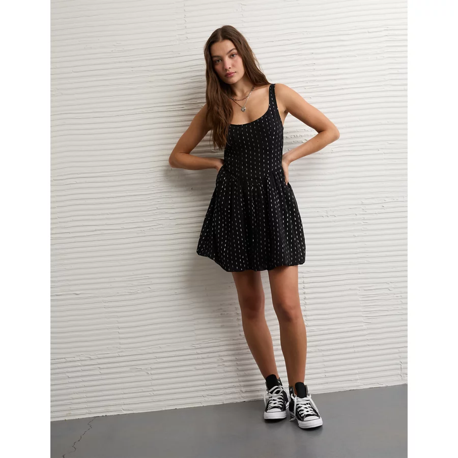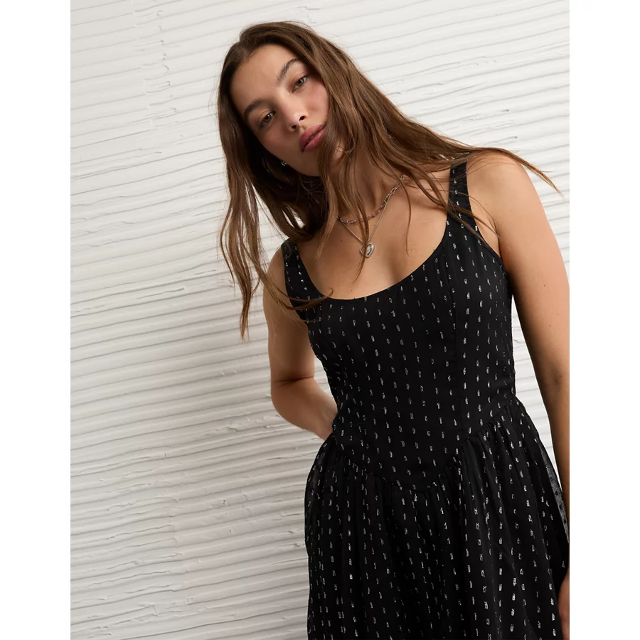 AE Sparkle Dot Ruffled Cropped Crew Socks - Black