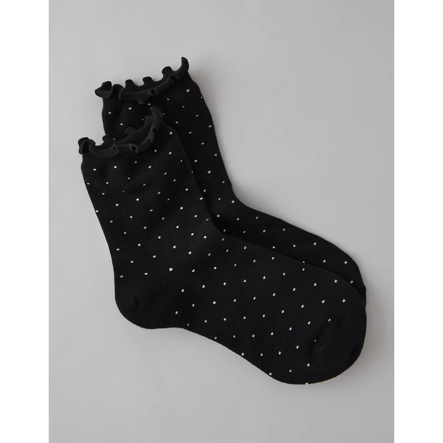 AE Sparkle Dot Ruffled Cropped Crew Socks – Black