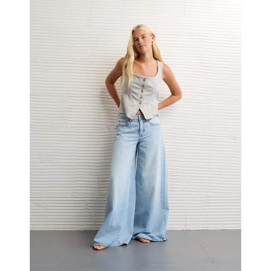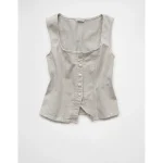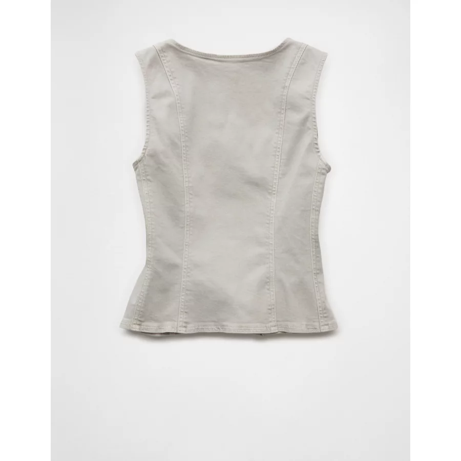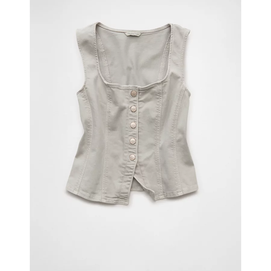 AE Square Neck Button-Up Denim Vest – Light Gray