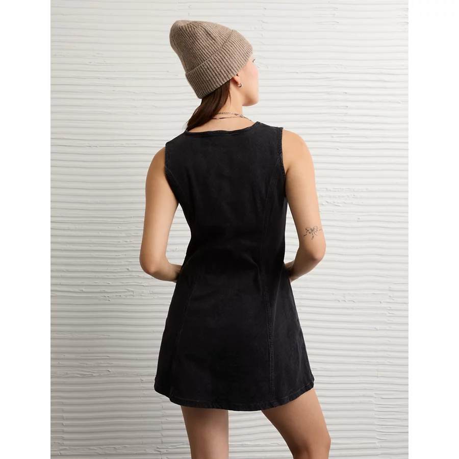 AE Square Neck Denim Mini Shift Dress - Light Wash