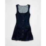 AE Square Neck Denim Mini Dress – Dark Wash