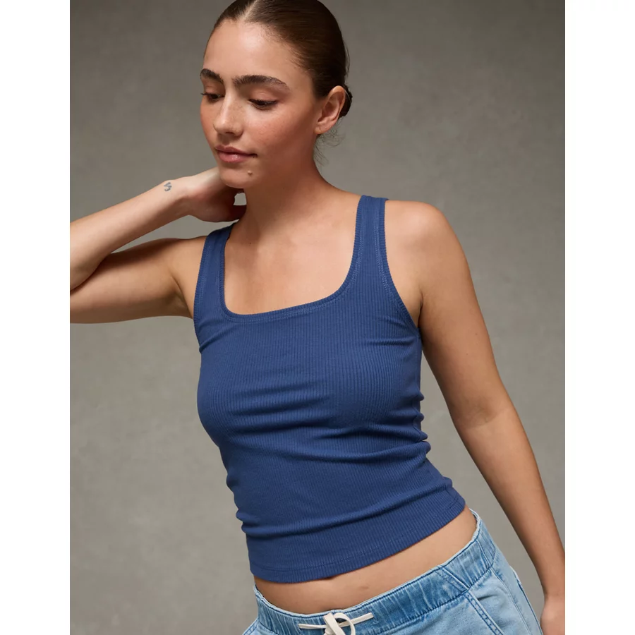 AE Square Neck Plush Tank Top – Deep Sea Blue