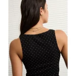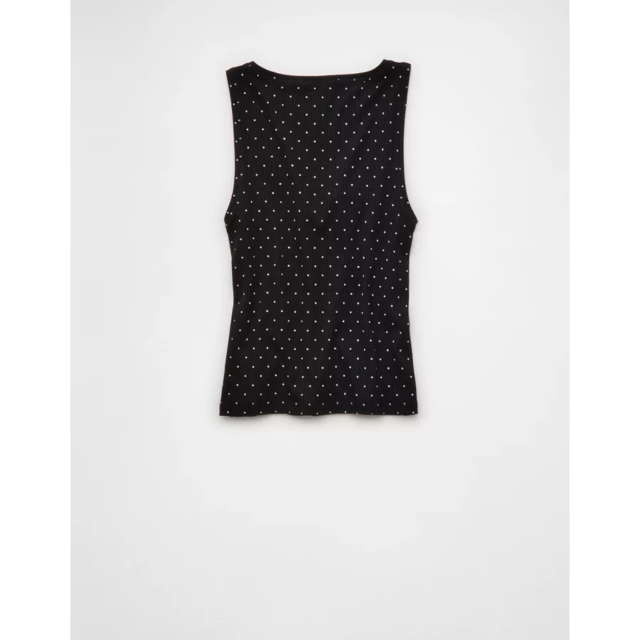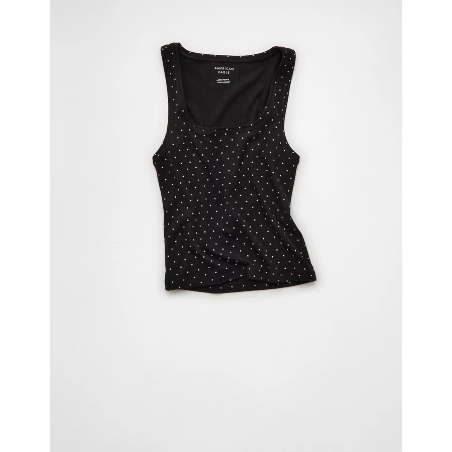 AE Square Neck Polka Dot Tank Top – True Black