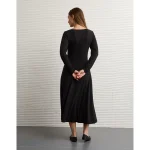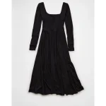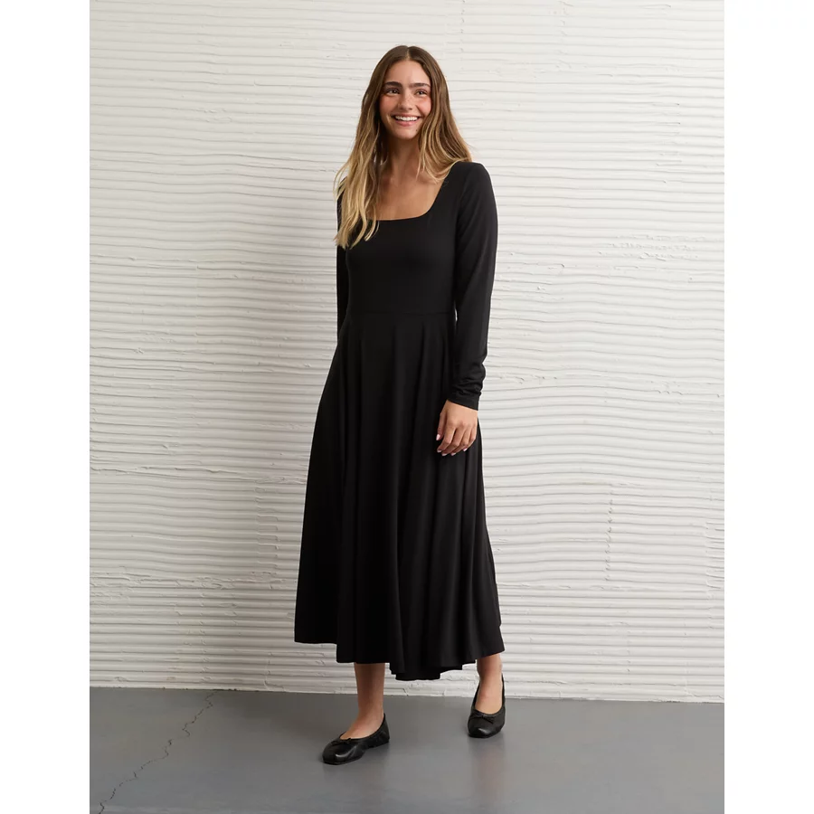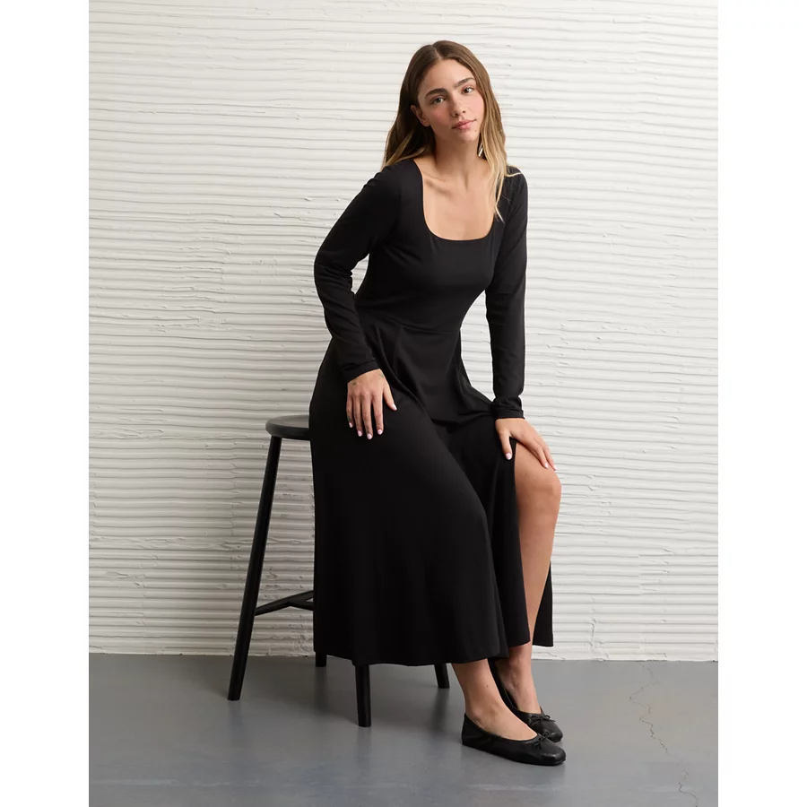 AE Square Neck Side Slit Midi Dress – Black
