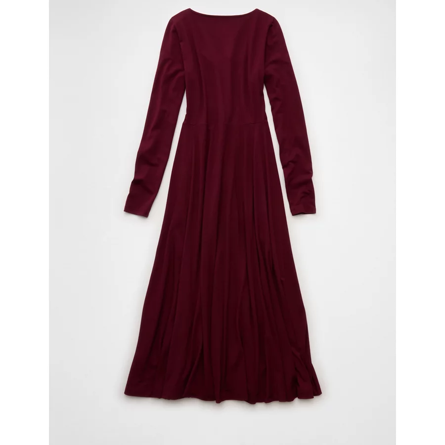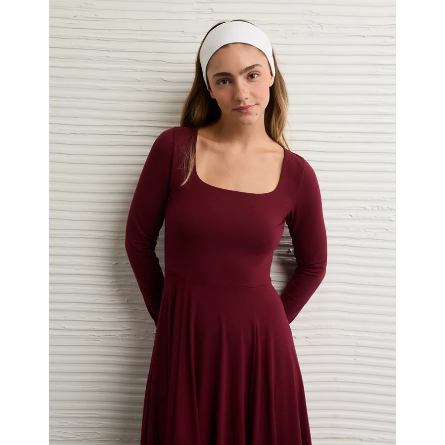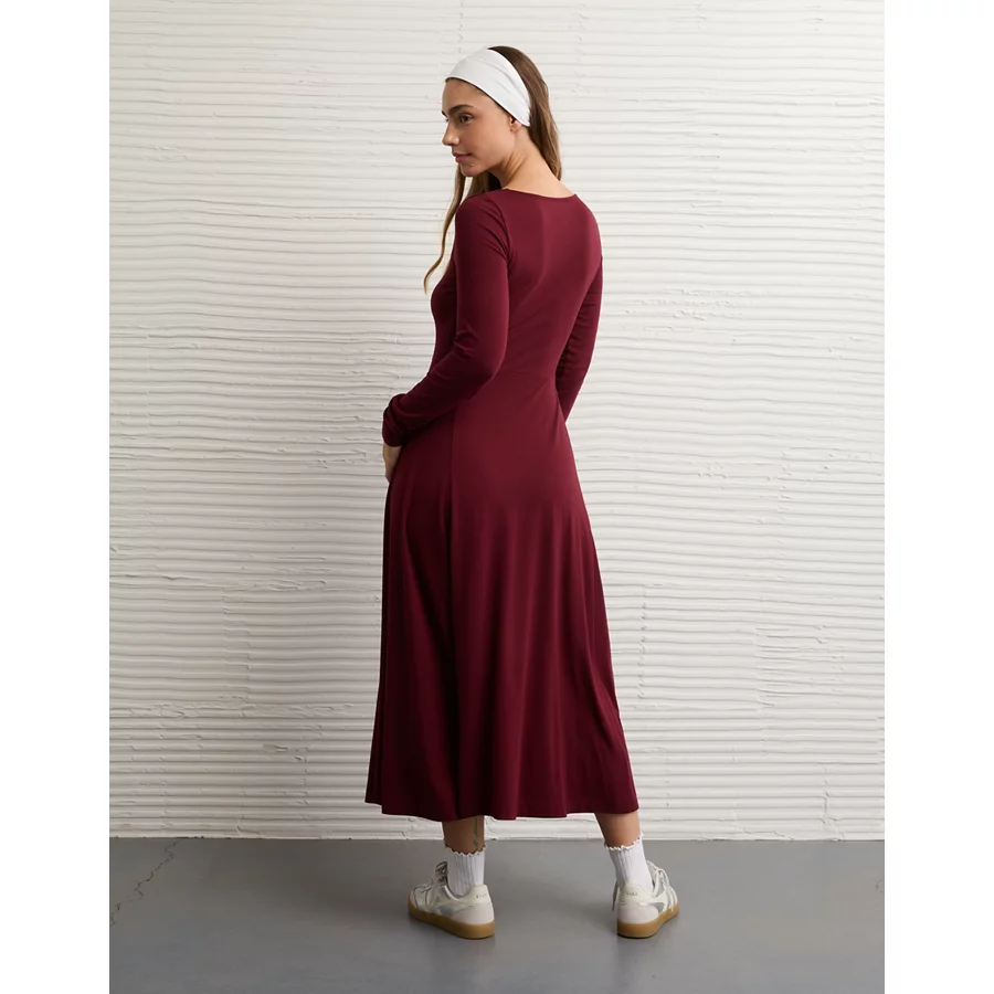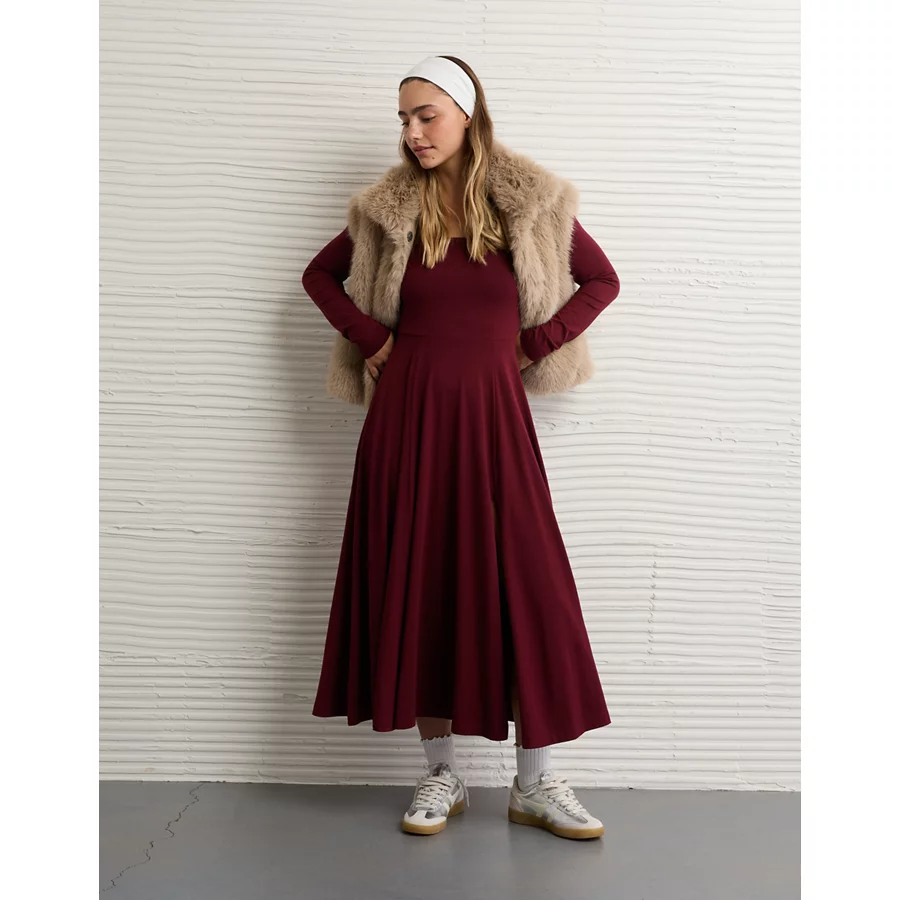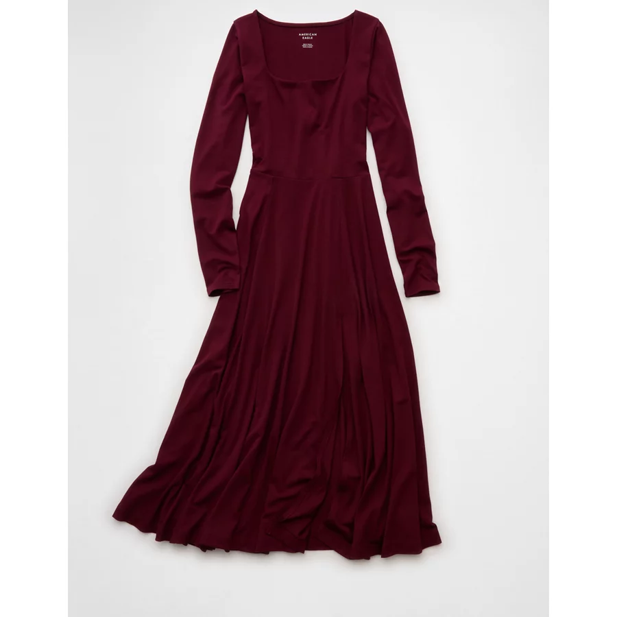 AE Square Neck Side Slit Midi Dress – Preppy Red
