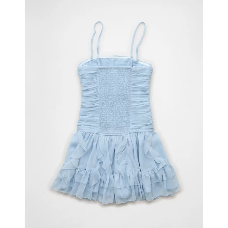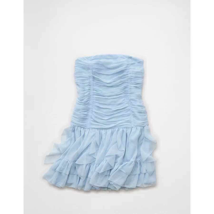 AE Strapless Drop Waist Ruffle Mini Dress – Light Blue
