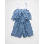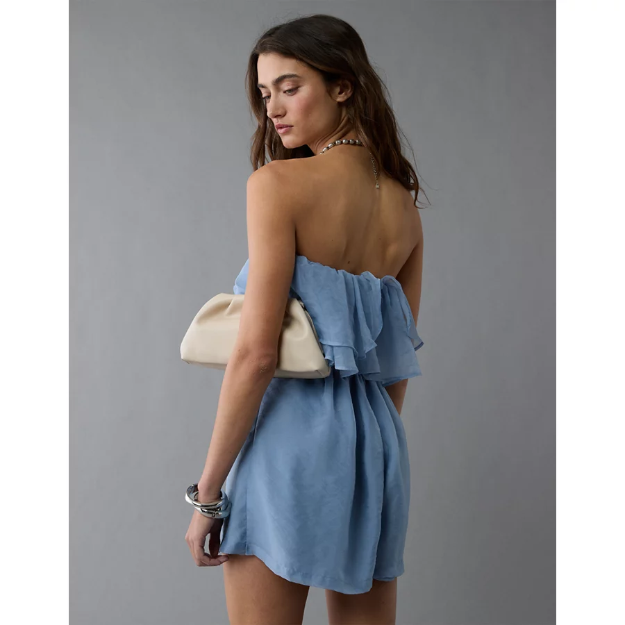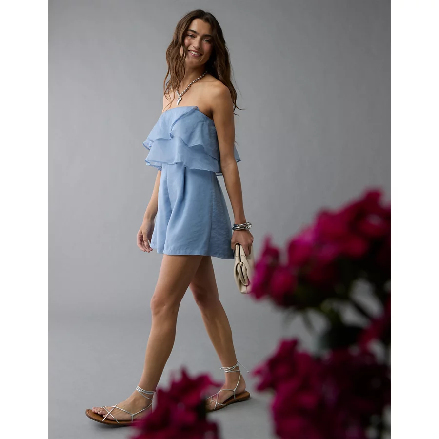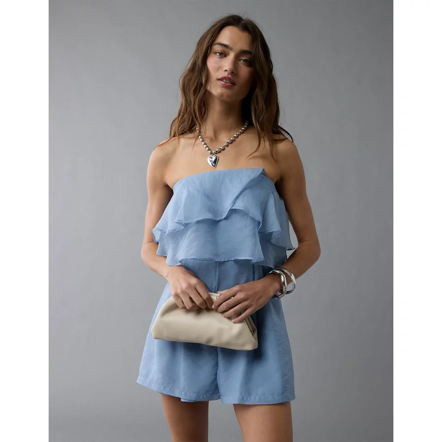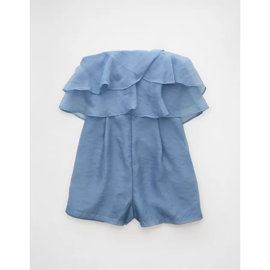 AE Strapless Organza Ruffle Romper – Blue