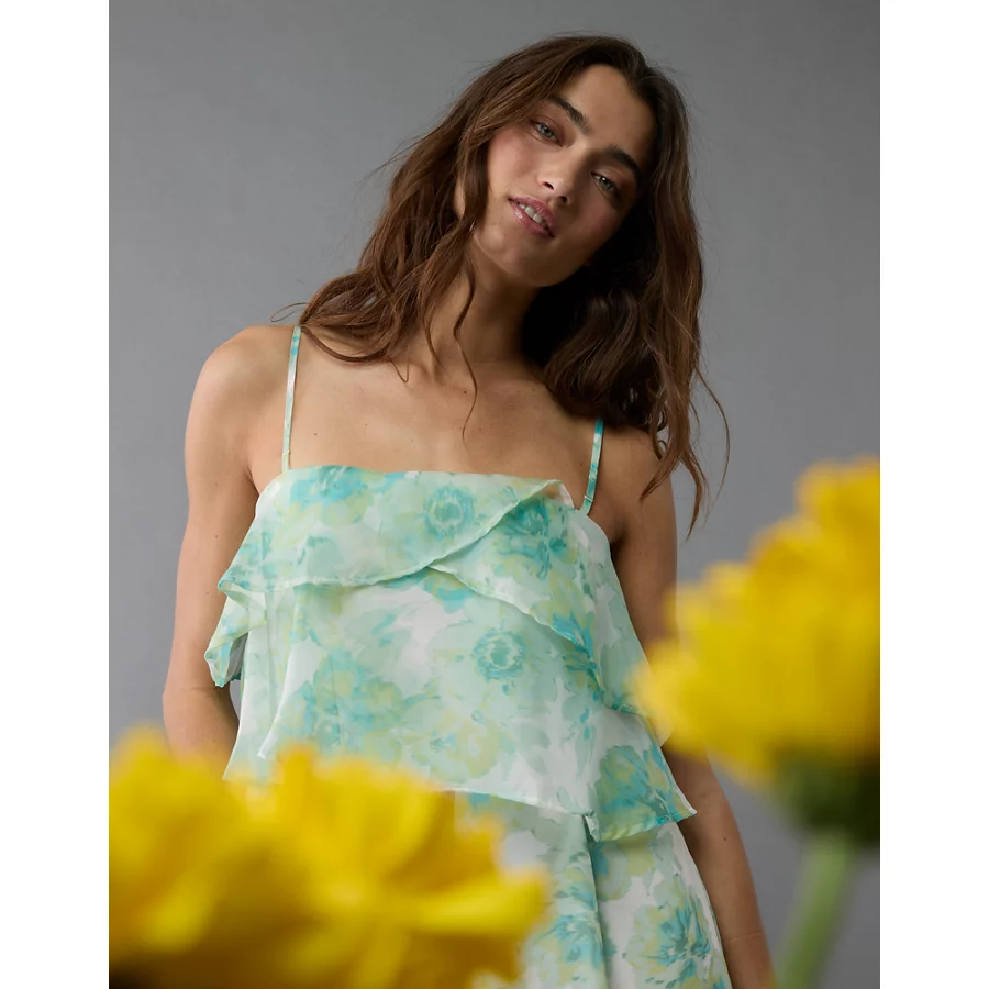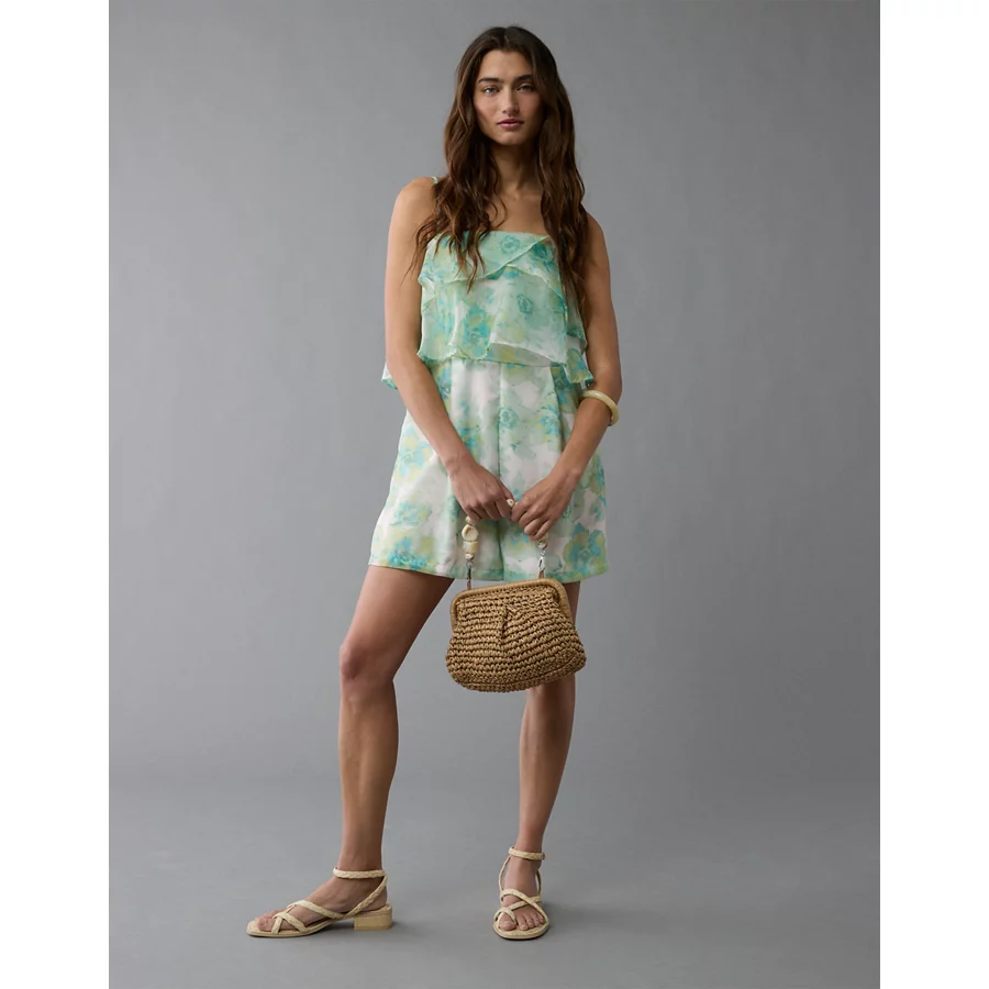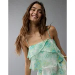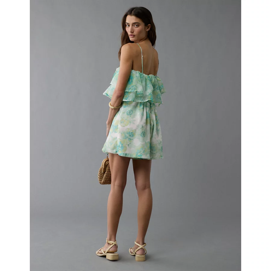 AE Strapless Drop Waist Ruffle Mini Dress - Light Blue