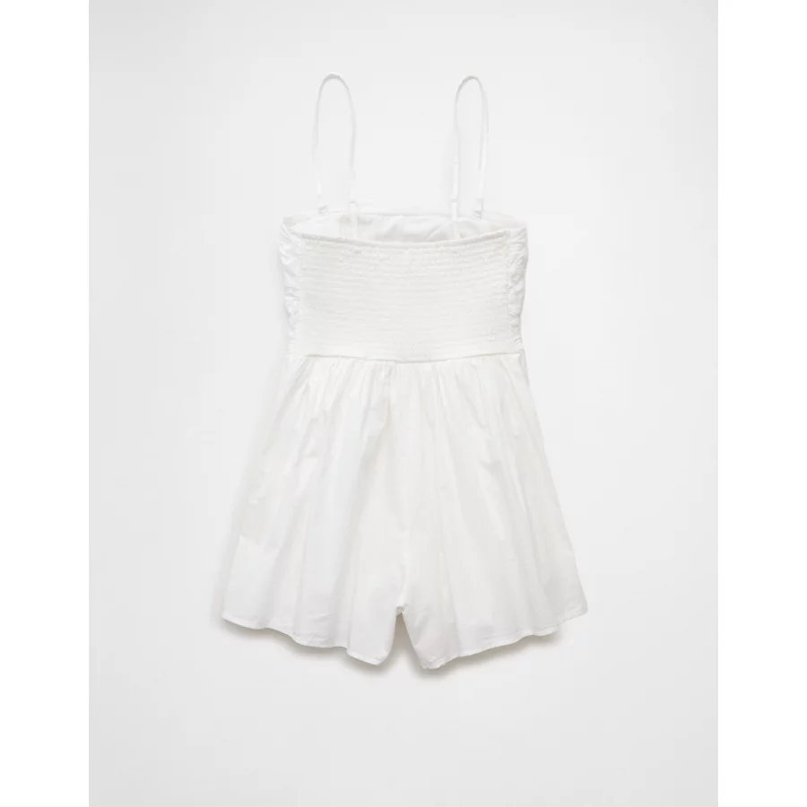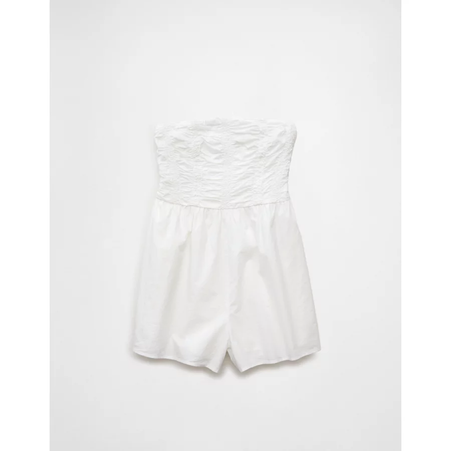 AE Strapless Ruched Bodice Romper – Cream