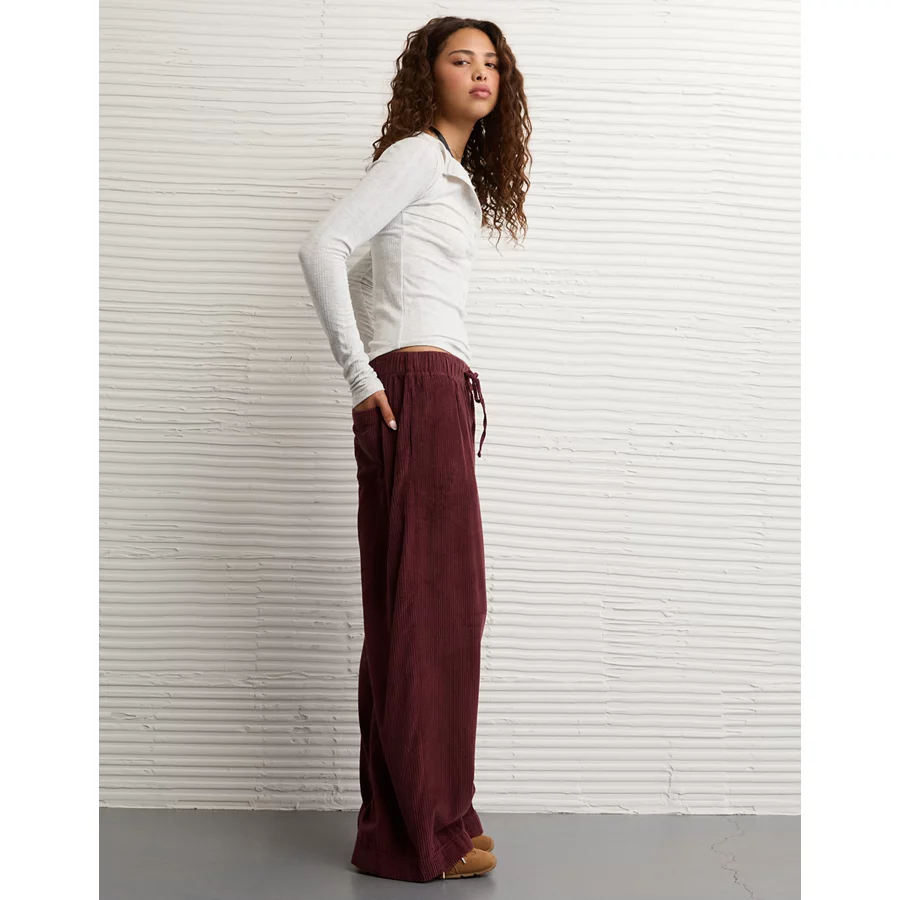 AE Stretch Corduroy Low-Rise Baggy Wide-Leg Pant – Faded Raisin