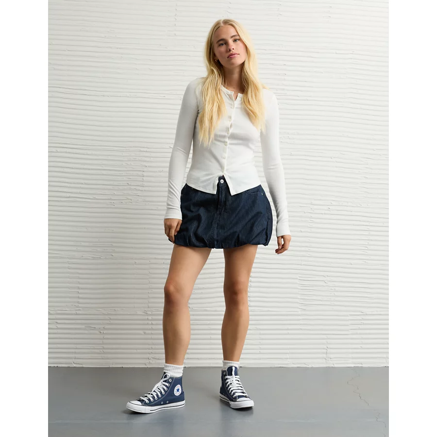 AE Stretch Denim Bubble Skirt – Dark Wash