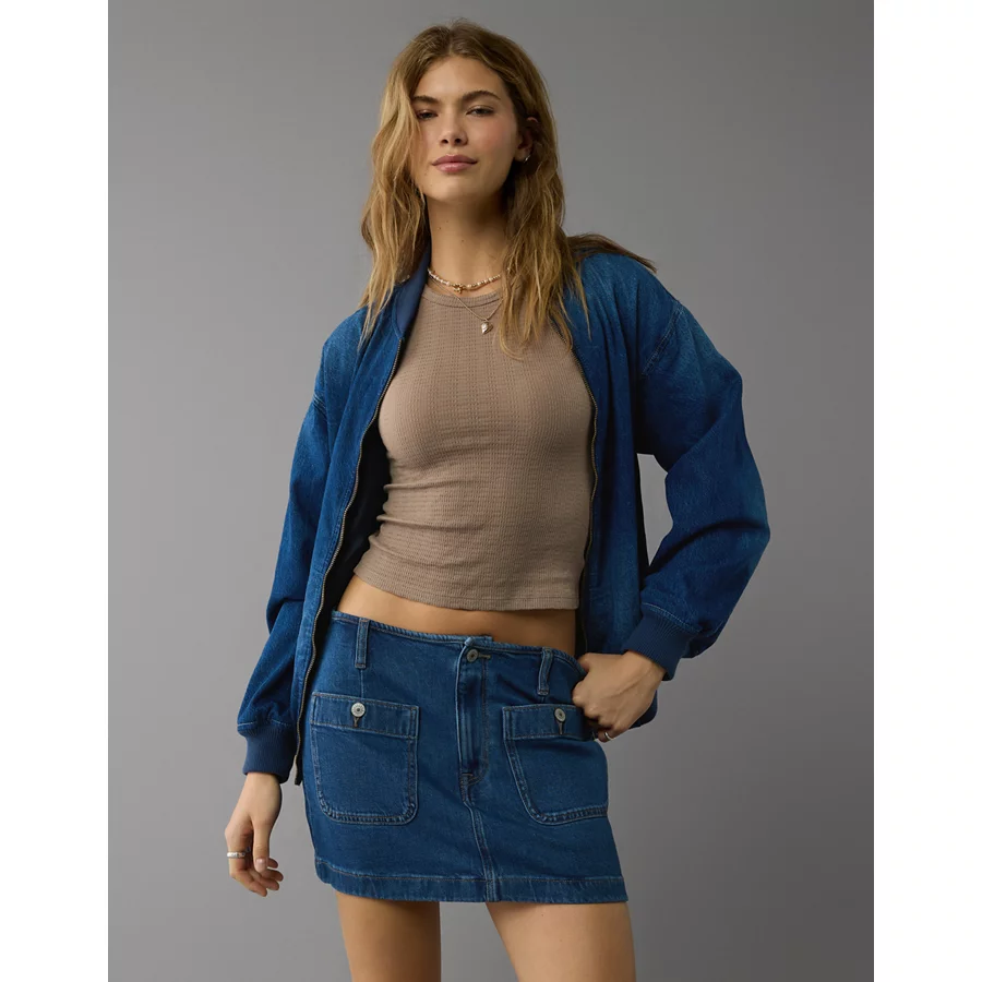 AE Stretch Low-Rise A-Line Denim Mini Skirt – Dark Clouds