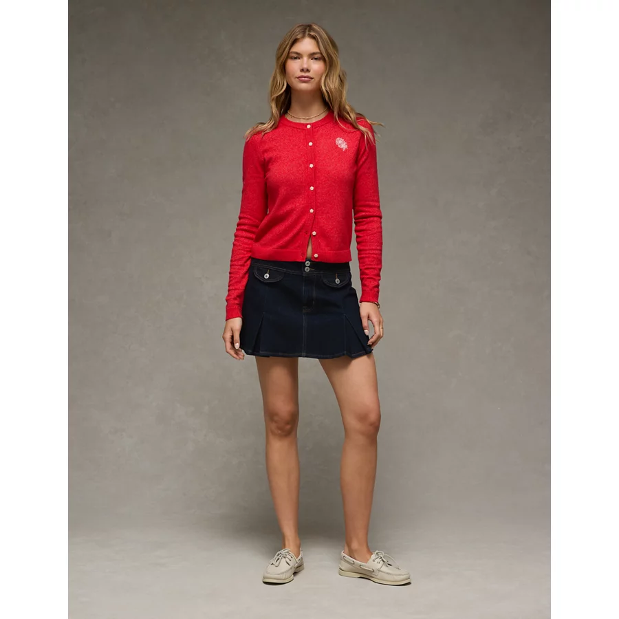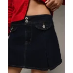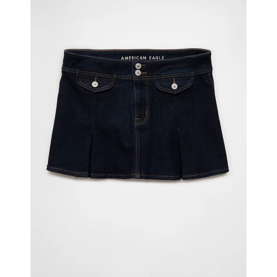 AE Stretch Low-Rise A-Line Pleated Mini Skirt – Dark Wash