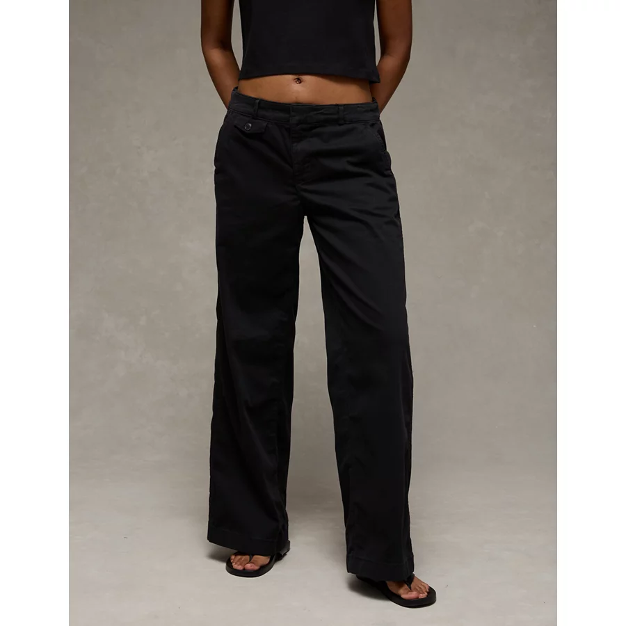 AE Stretch Low-Rise Wide-Leg Khaki Pant – Onyx Black