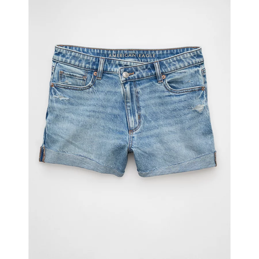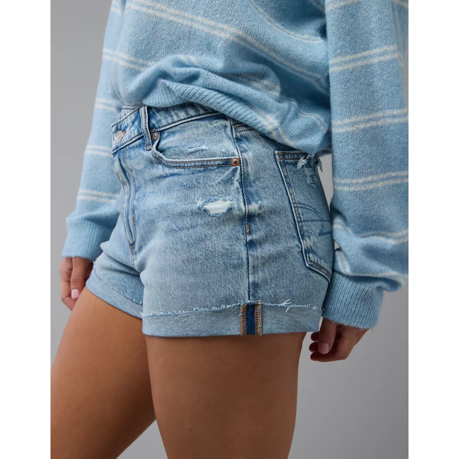 AE Stretch Ripped Denim Mom Short – Medium Bright Indigo
