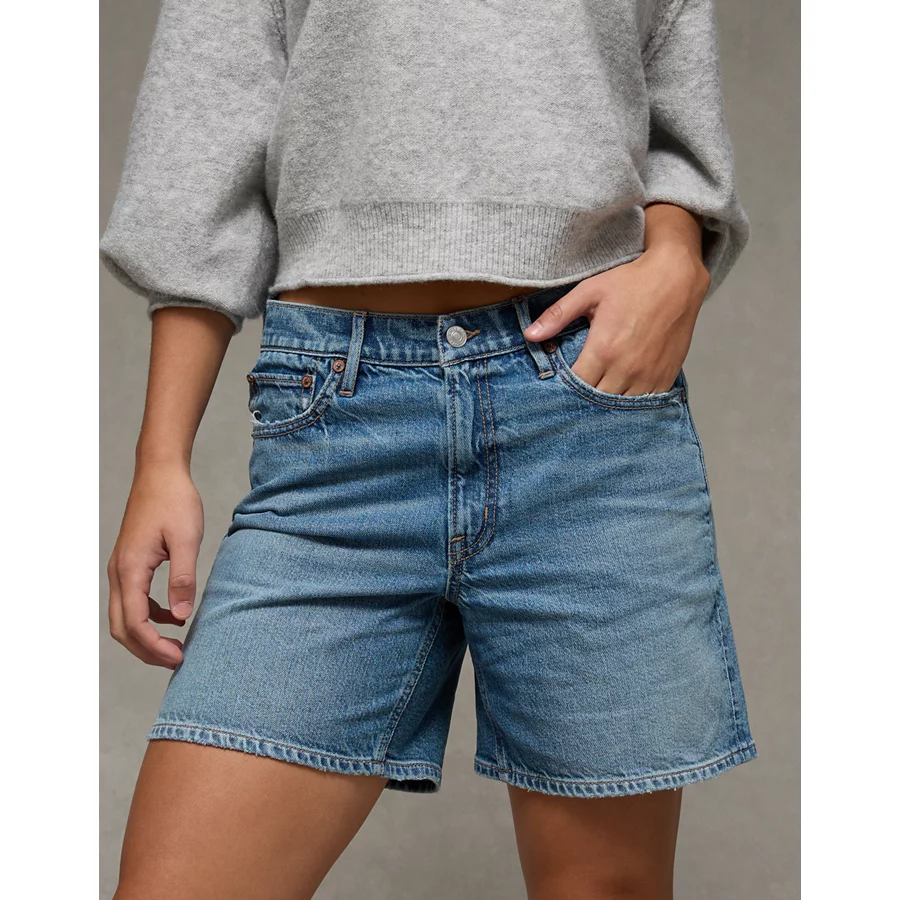 AE Strigid Super High-Waisted Relaxed Denim Short - Medium Tinted Indigo