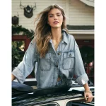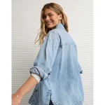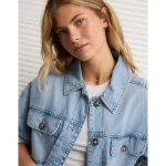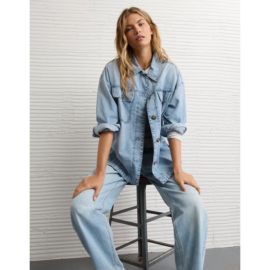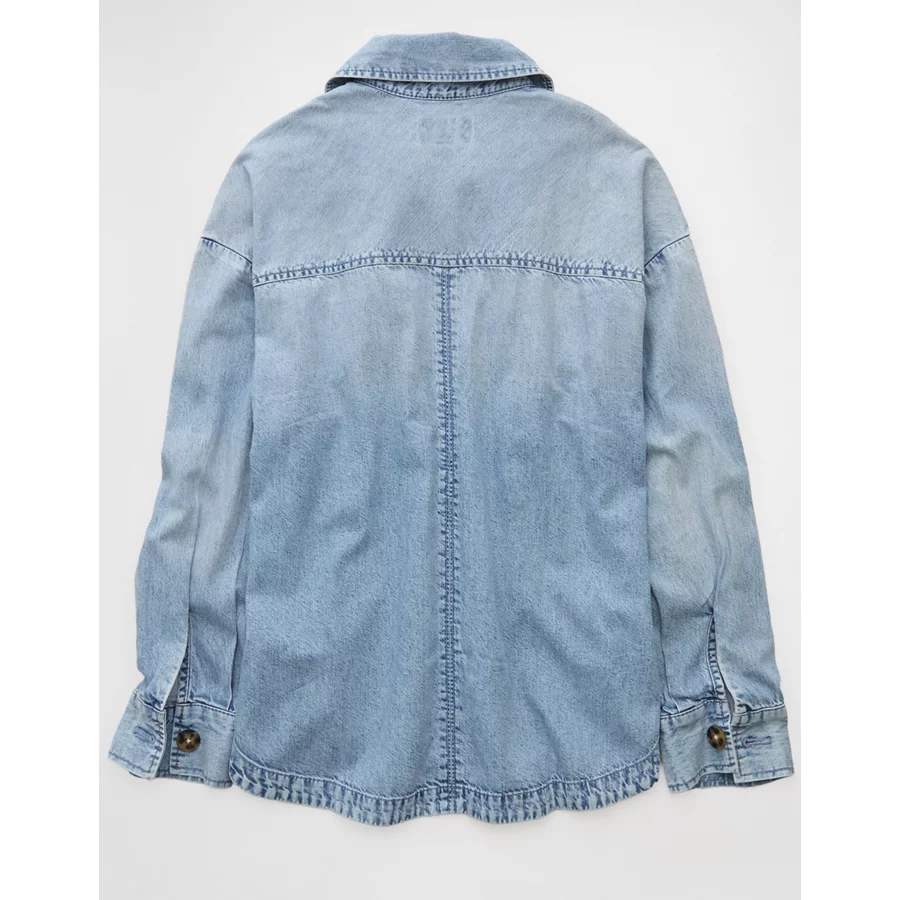 AE Studded Denim Shacket – Medium Wash