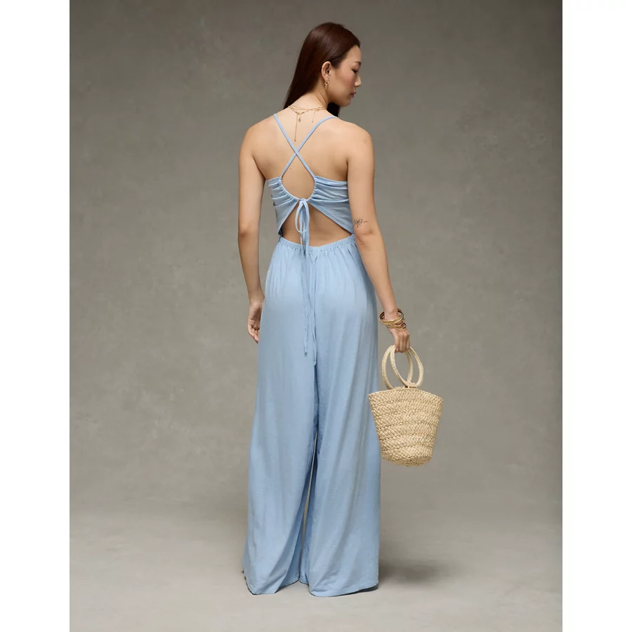 AE Sunchaser Knit Babydoll Jumpsuit – Light Blue