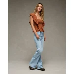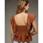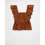 AE Sunchaser Knit Flutter Sleeve Babydoll Shirt – Amber Brown