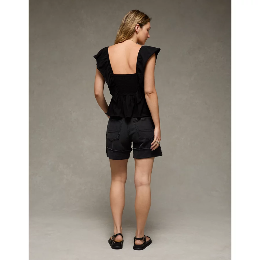 AE Sunchaser Knit Flutter Sleeve Babydoll Shirt – True Black