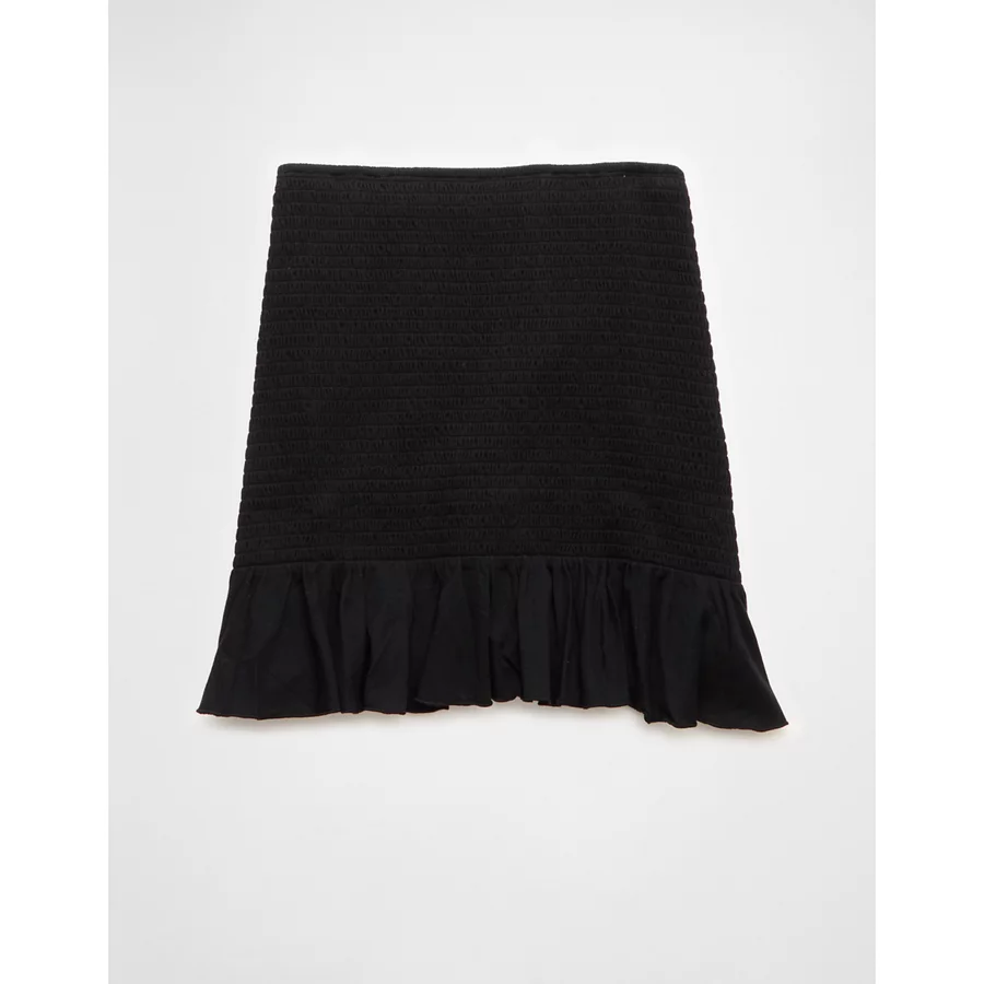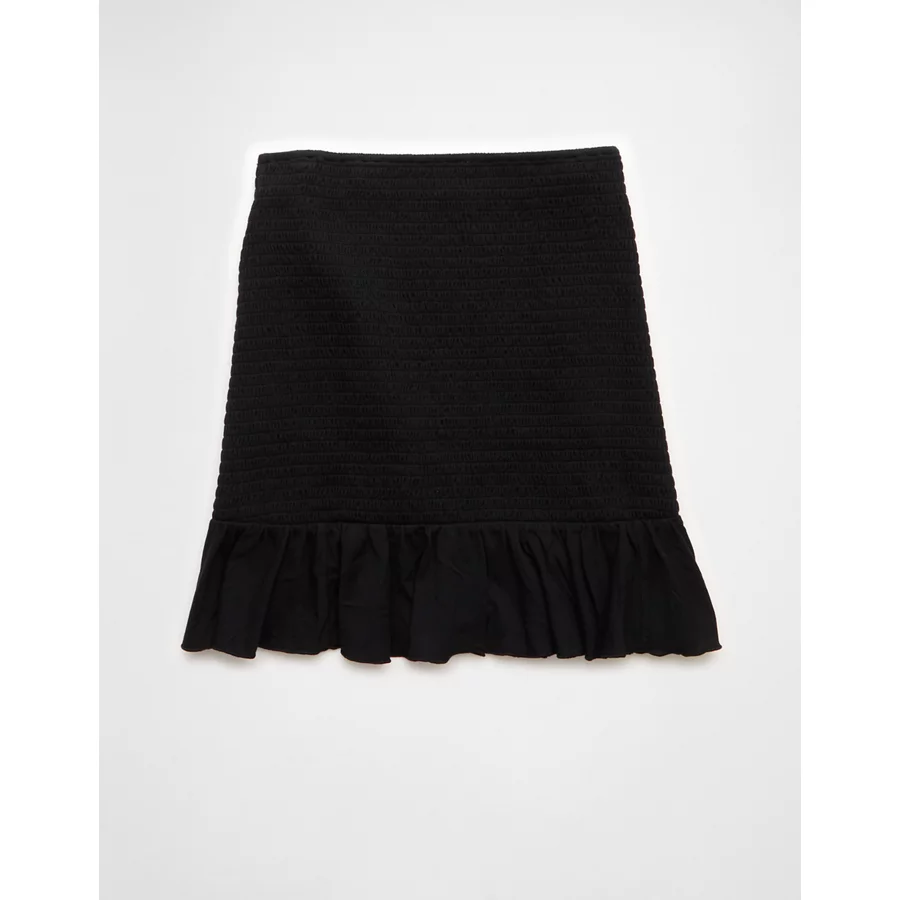 AE Sunchaser Knit High-Waisted Smocked Mini Skirt – True Black