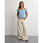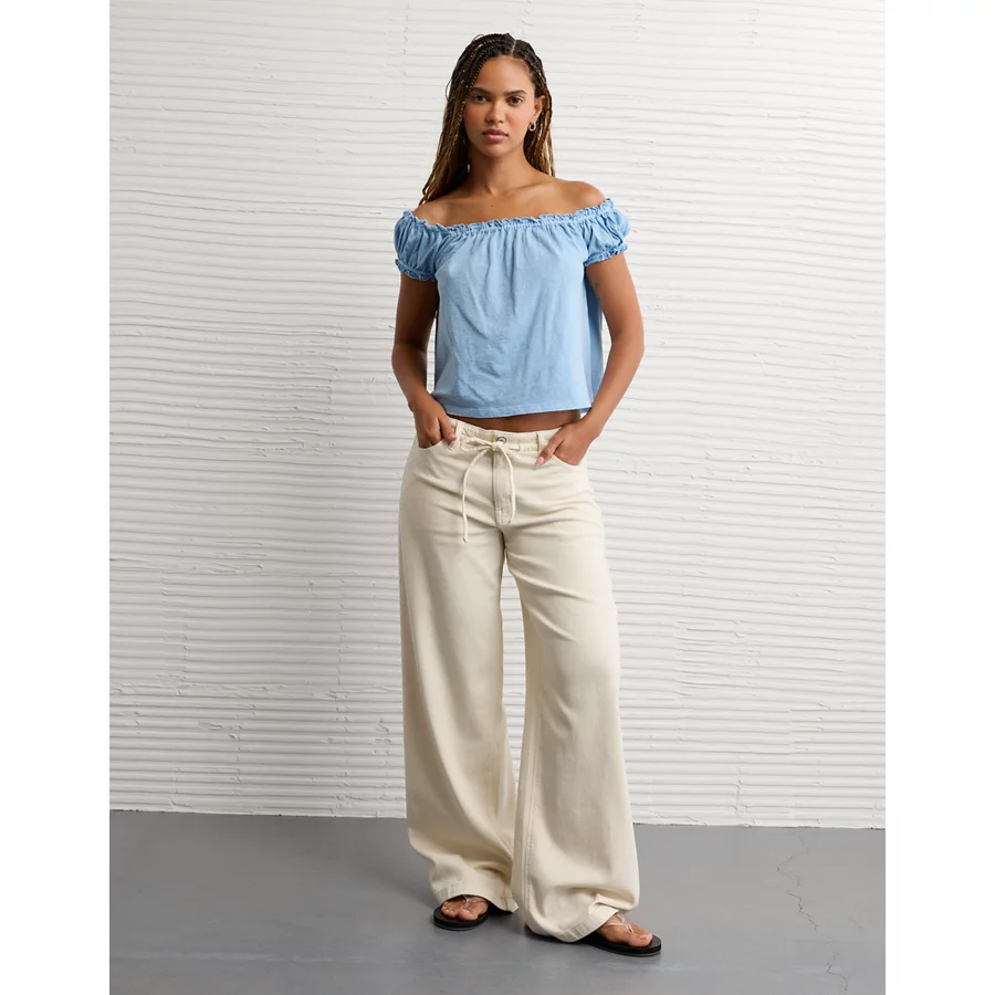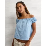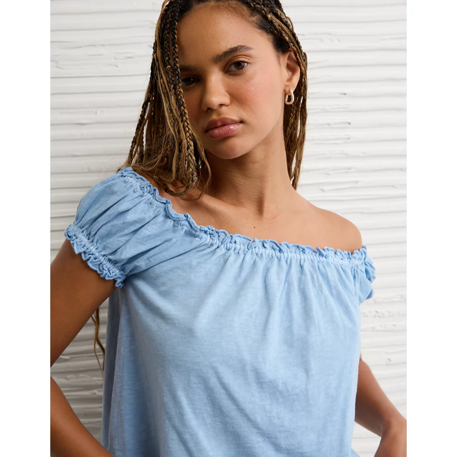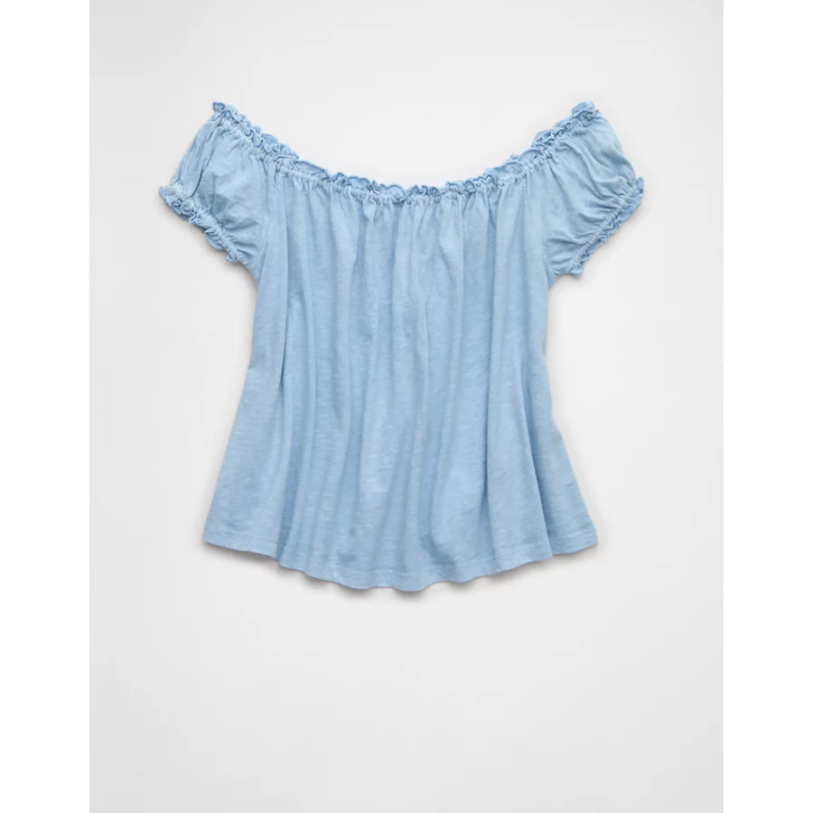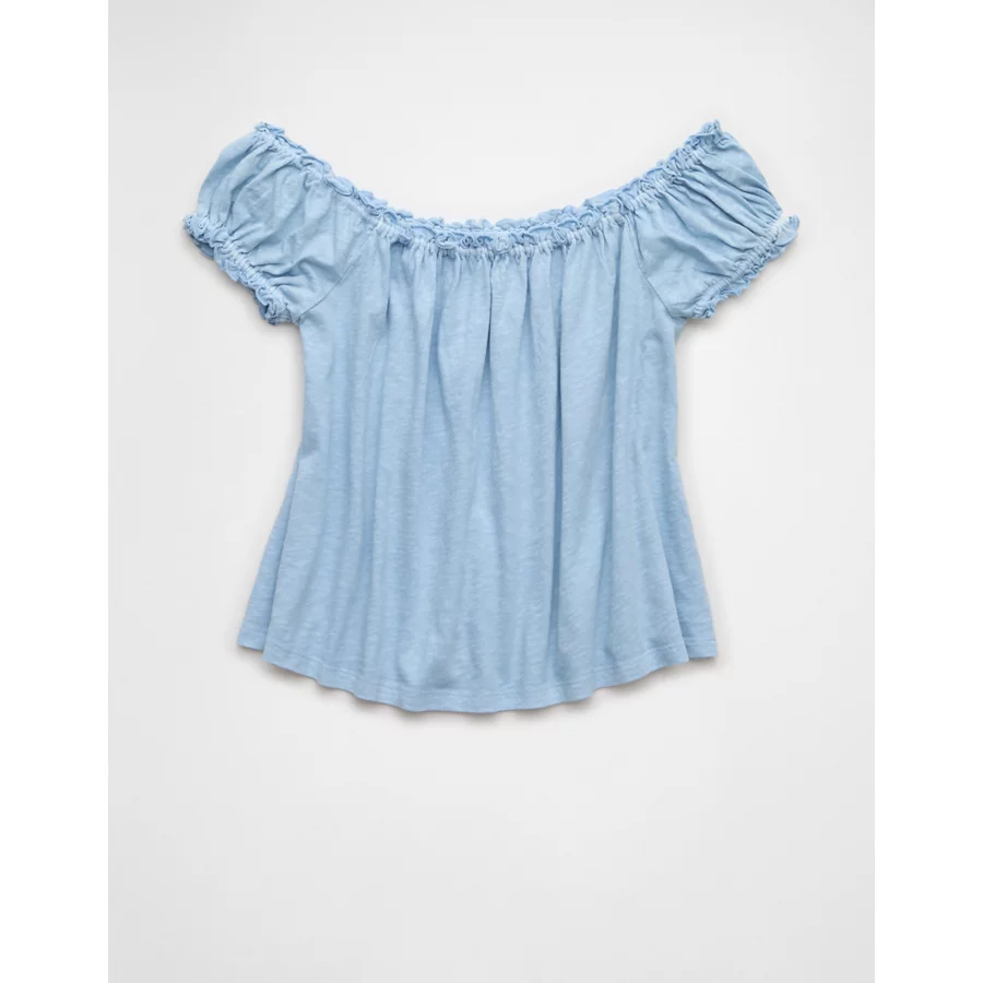 AE Sunchaser Knit Off The Shoulder Swing Top – Light Blue