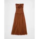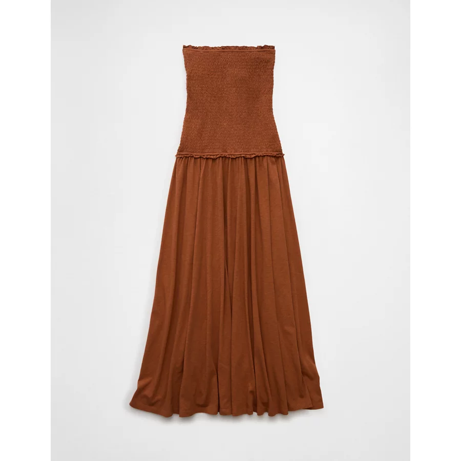 AE Sunchaser Knit Smocked Drop Waist Midi Dress – Amber Brown