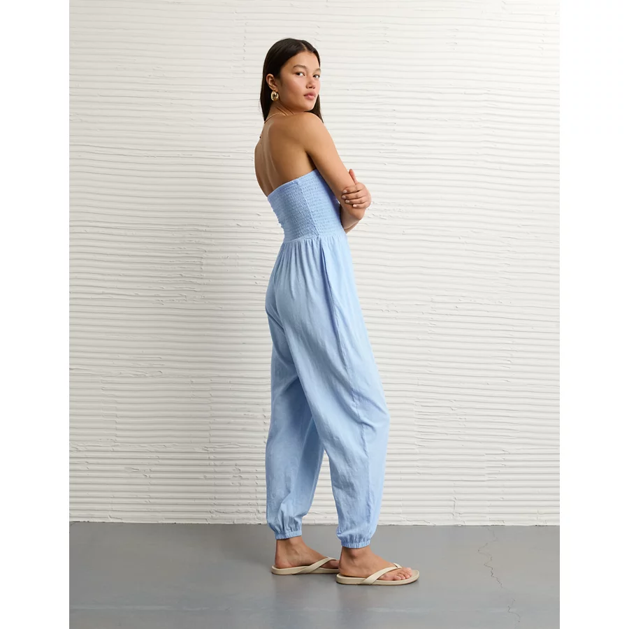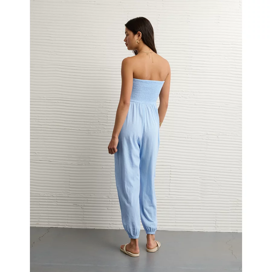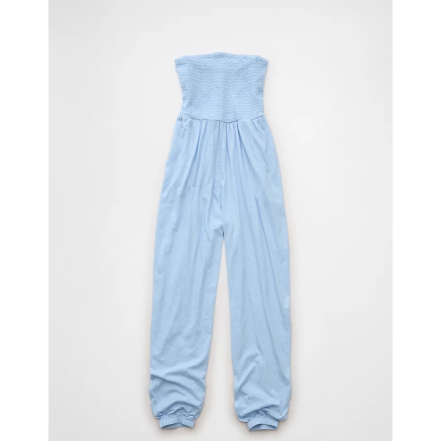 AE Sunchaser Knit Smocked Tube Jumpsuit – Blue Breeze