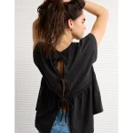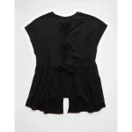 AE Sunchaser Knit Tie Back Babydoll T-Shirt – Black