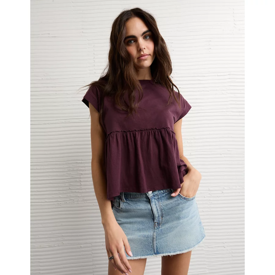 AE Sunchaser Knit Tie Back Babydoll T-Shirt – Moonlight