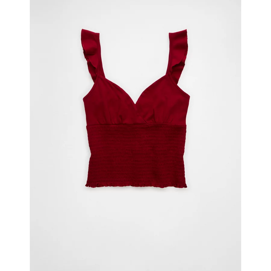 AE Sunchaser Knit Wrap Front Smocked Tank Top – Berry
