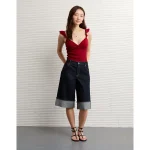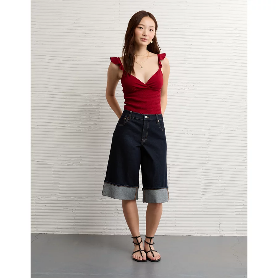 AE 8″ Dreamy Drape Stretch Low-Rise Baggy Jort – Medium Bright Indigo