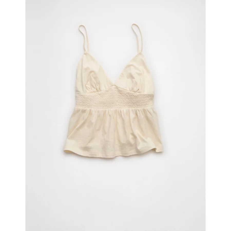 AE Sunchaser Smocked Babydoll Tank Top – Cream