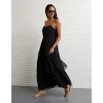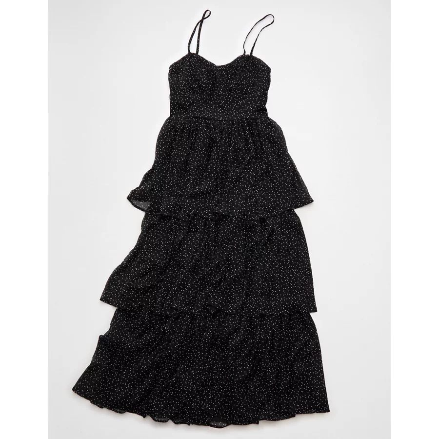 AE Asymmetrical Ruffle Maxi Slip Dress – Blue