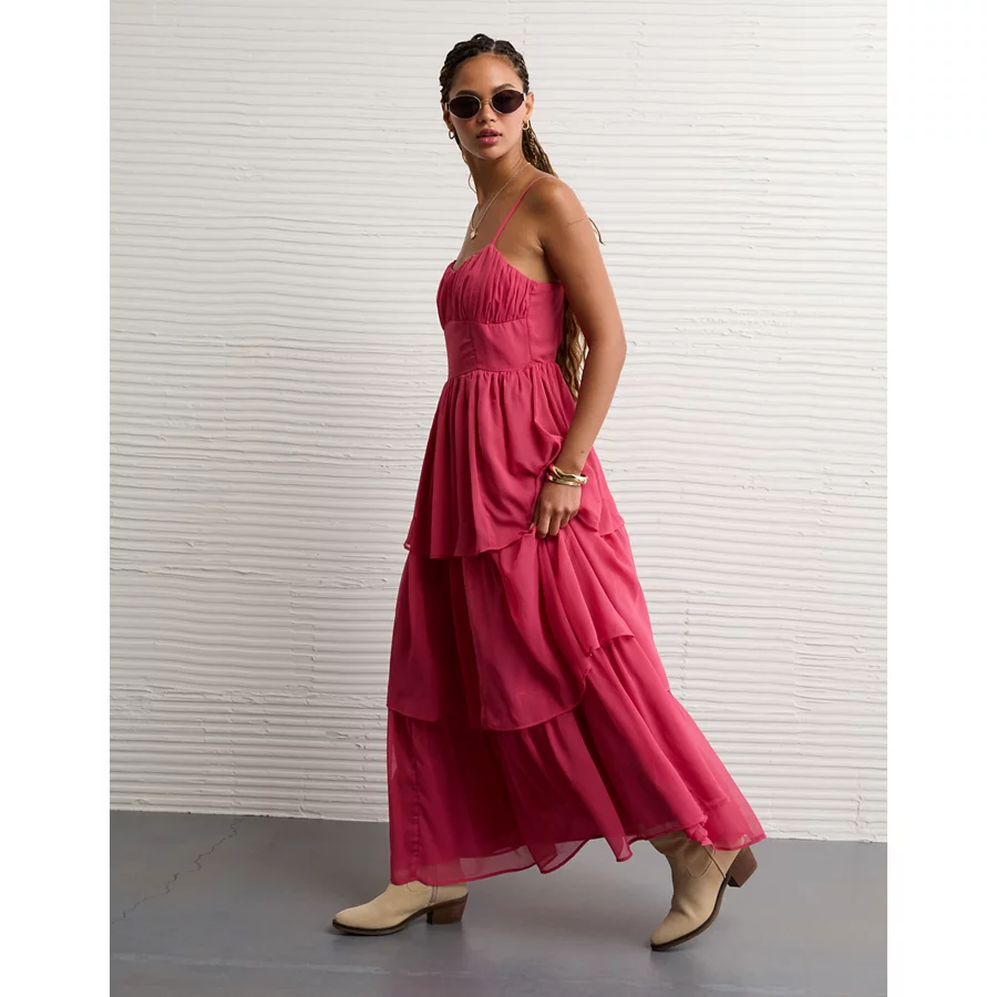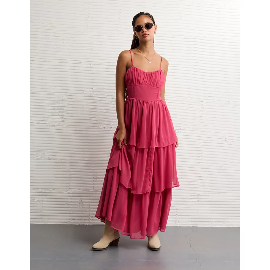 AE Sweetheart Tiered Maxi Dress – Pink