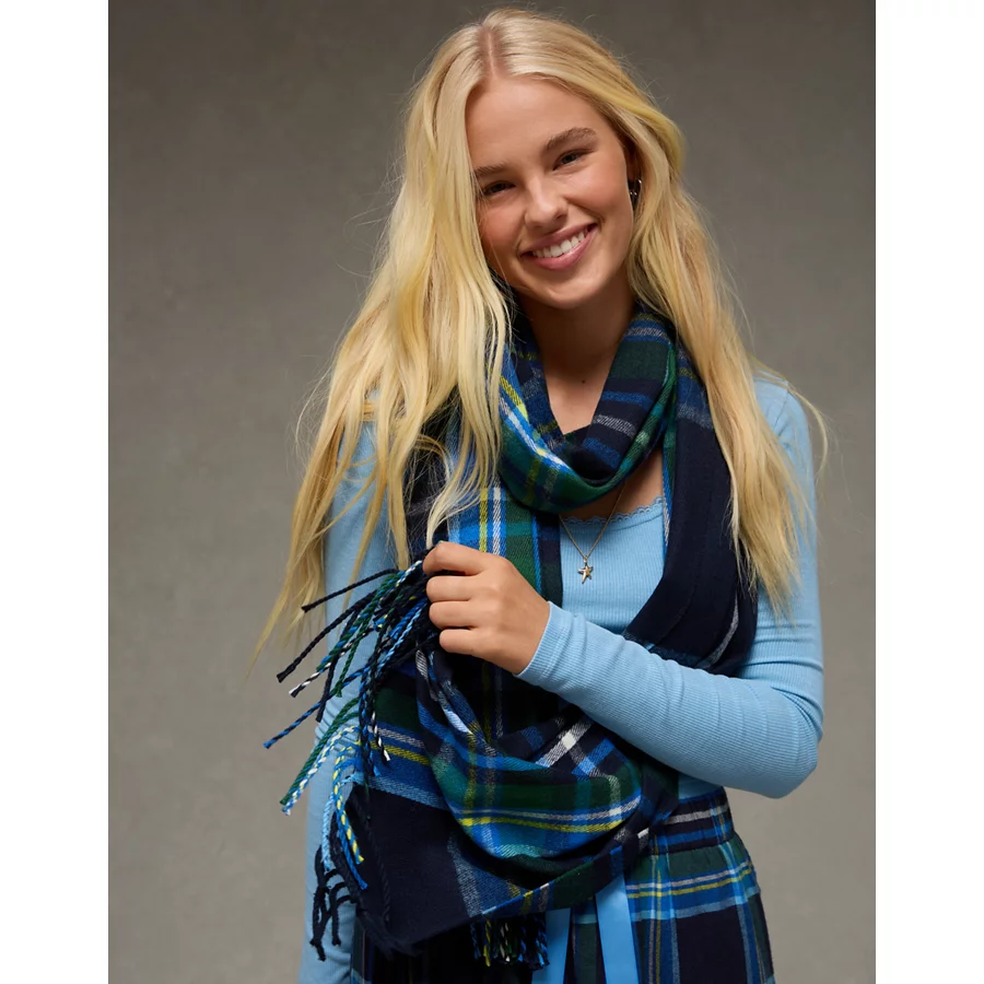 AE Tartan Plaid Scarf – Blue
