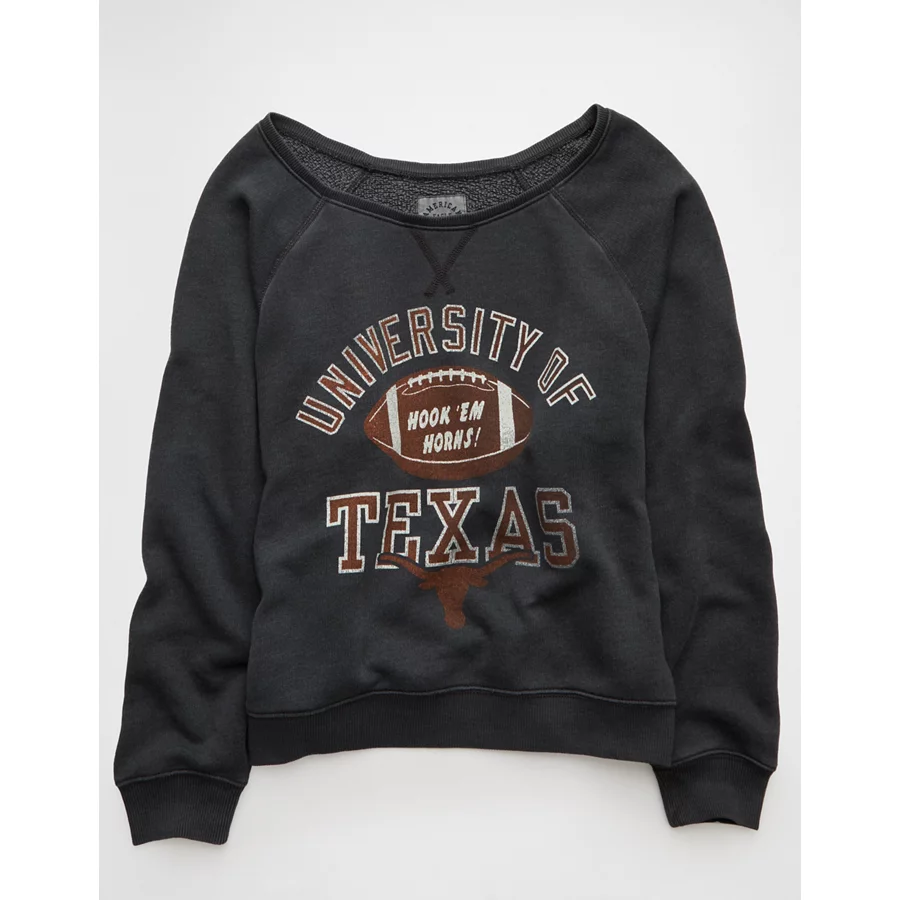 AE Texas Longhorns Graphic Off The Shoulder Sweatshirt – Washed Black