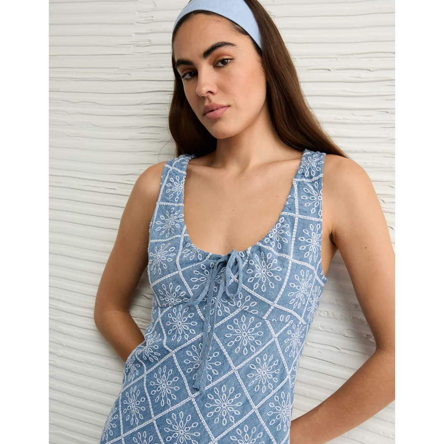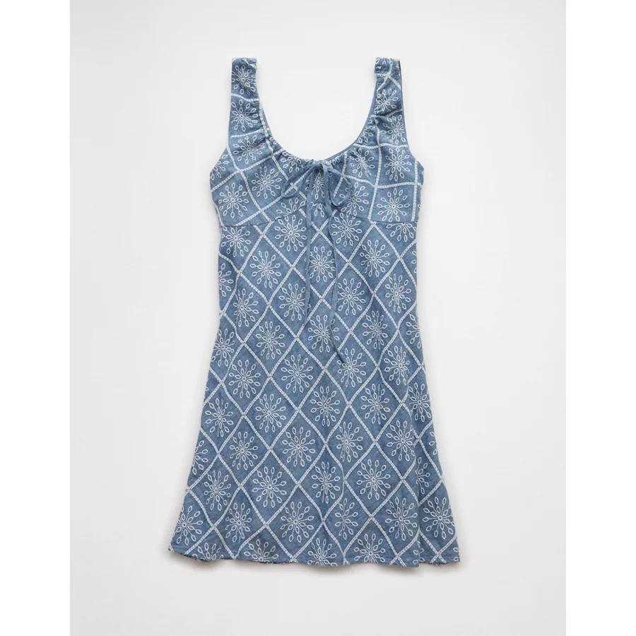 AE Tie Front Eyelet Mini Dress – Chambray Blue