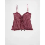 AE Tie Front Ruffle Trim Tank Top – Mauve