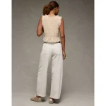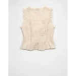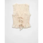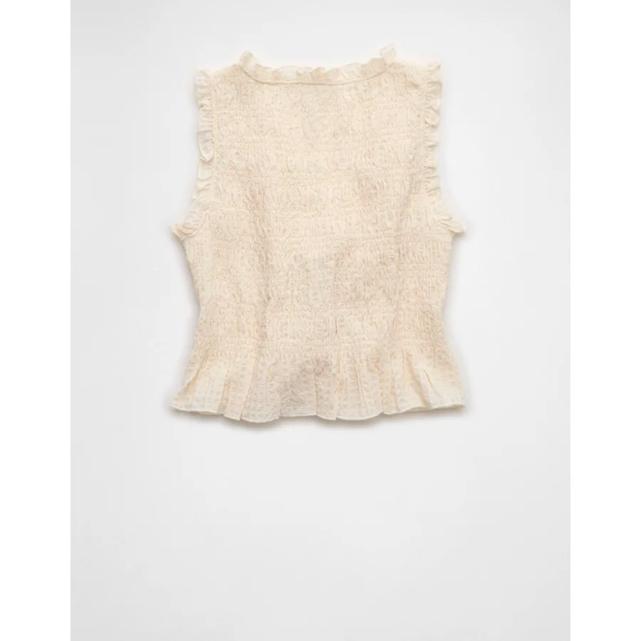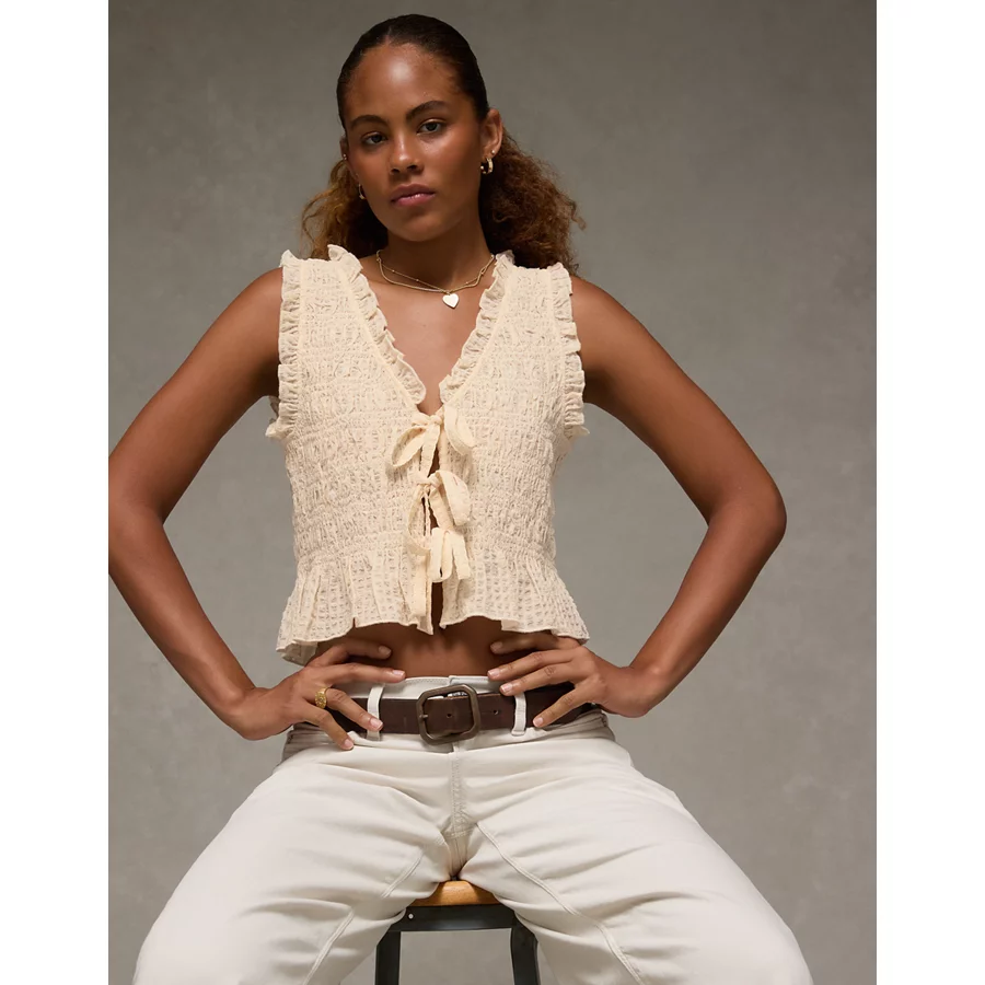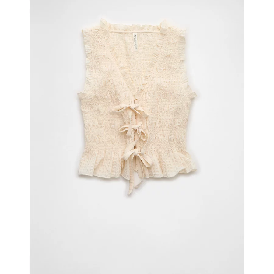 AE Tie-Front Smocked Tank Top – Cream