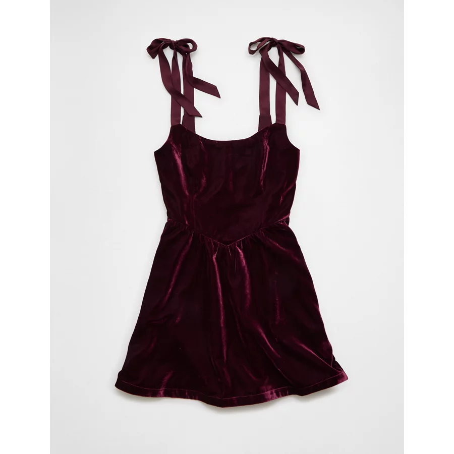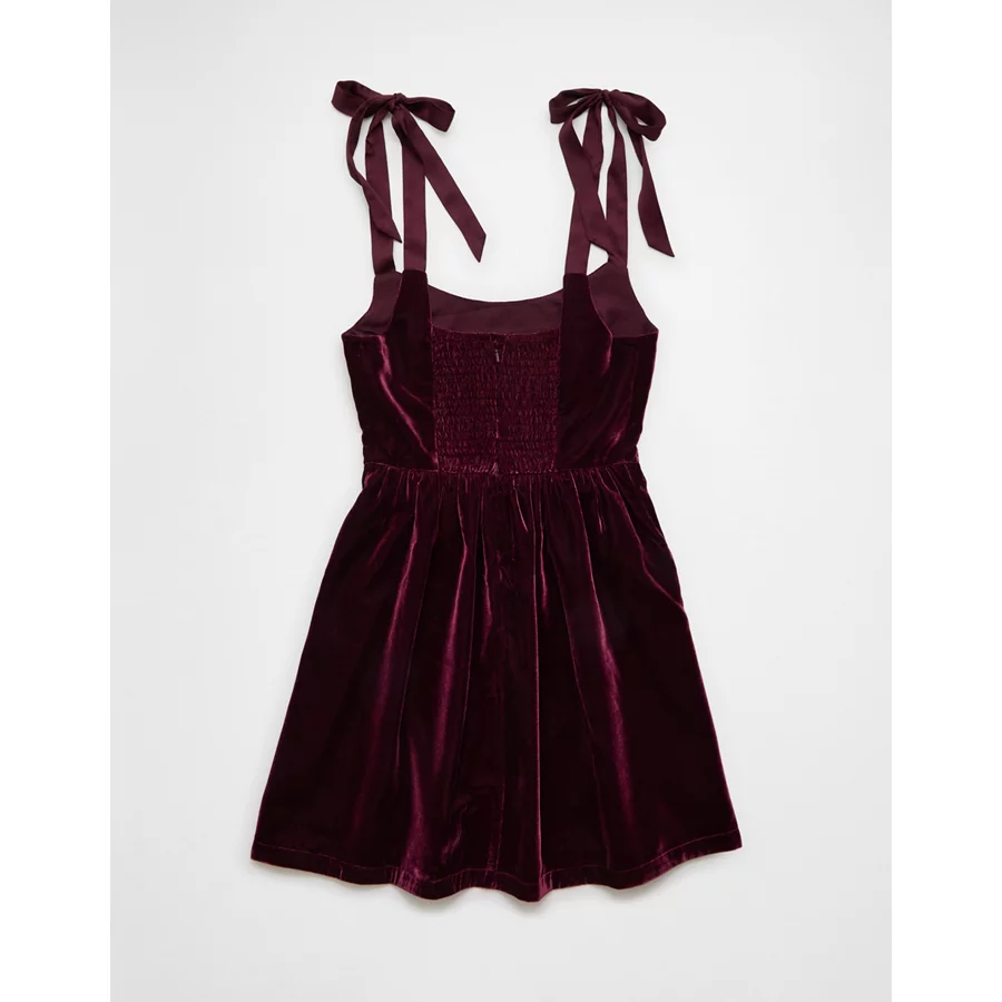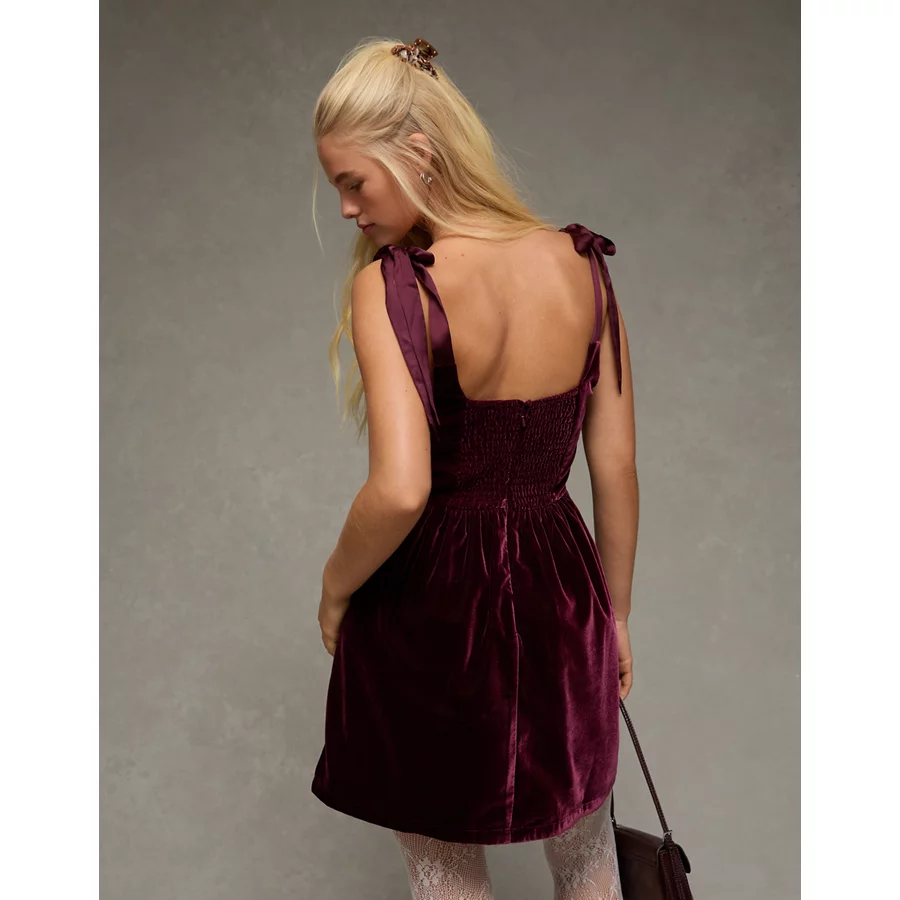 AE Tie-Strap Velvet Mini Dress – Burgundy