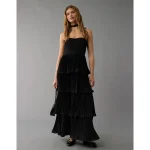 AE Asymmetrical Ruffle Maxi Slip Dress – Light Blue