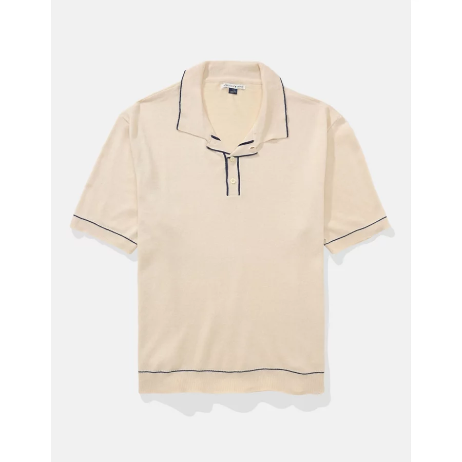 AE Tipped Sweater Polo Shirt – Cream