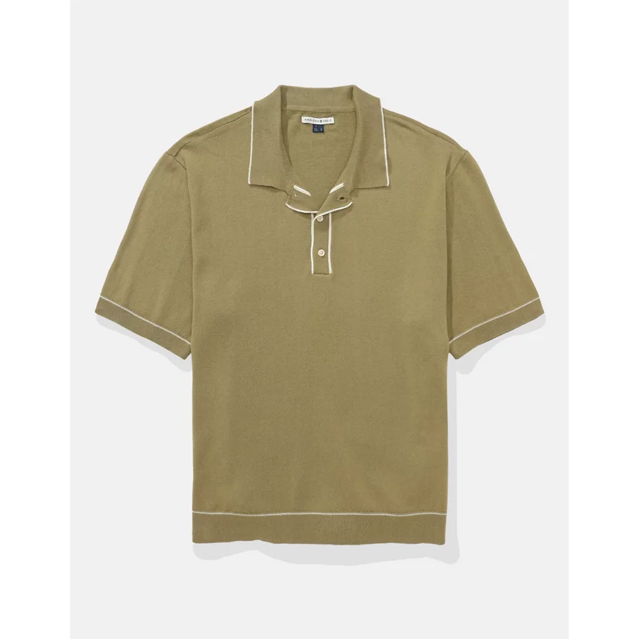 Super soft jersey with added stretchPolo collar with button placketAE 24/7 logoThis is Real Good: Made with the planet in