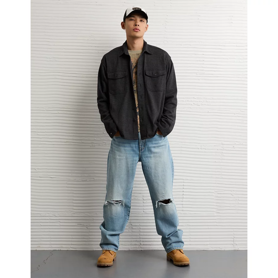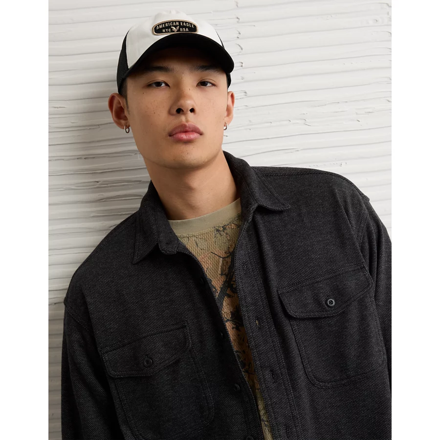 AE Twill Button-Up Shirt – Black