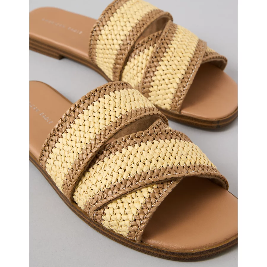 AE Two-Tone Raffia Slide Sandal – Natural