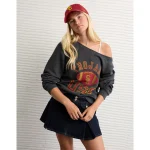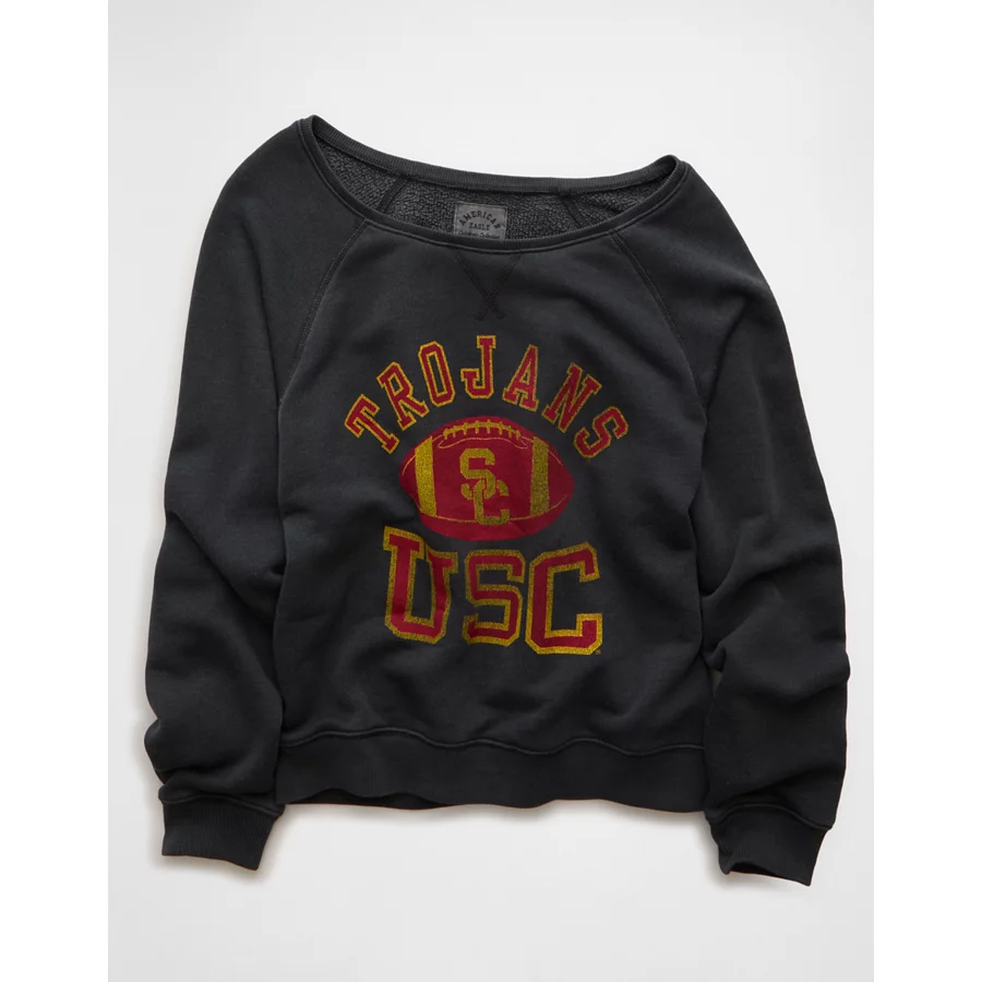 AE USC Trojans Graphic Off The Shoulder Sweatshirt – Black Wash